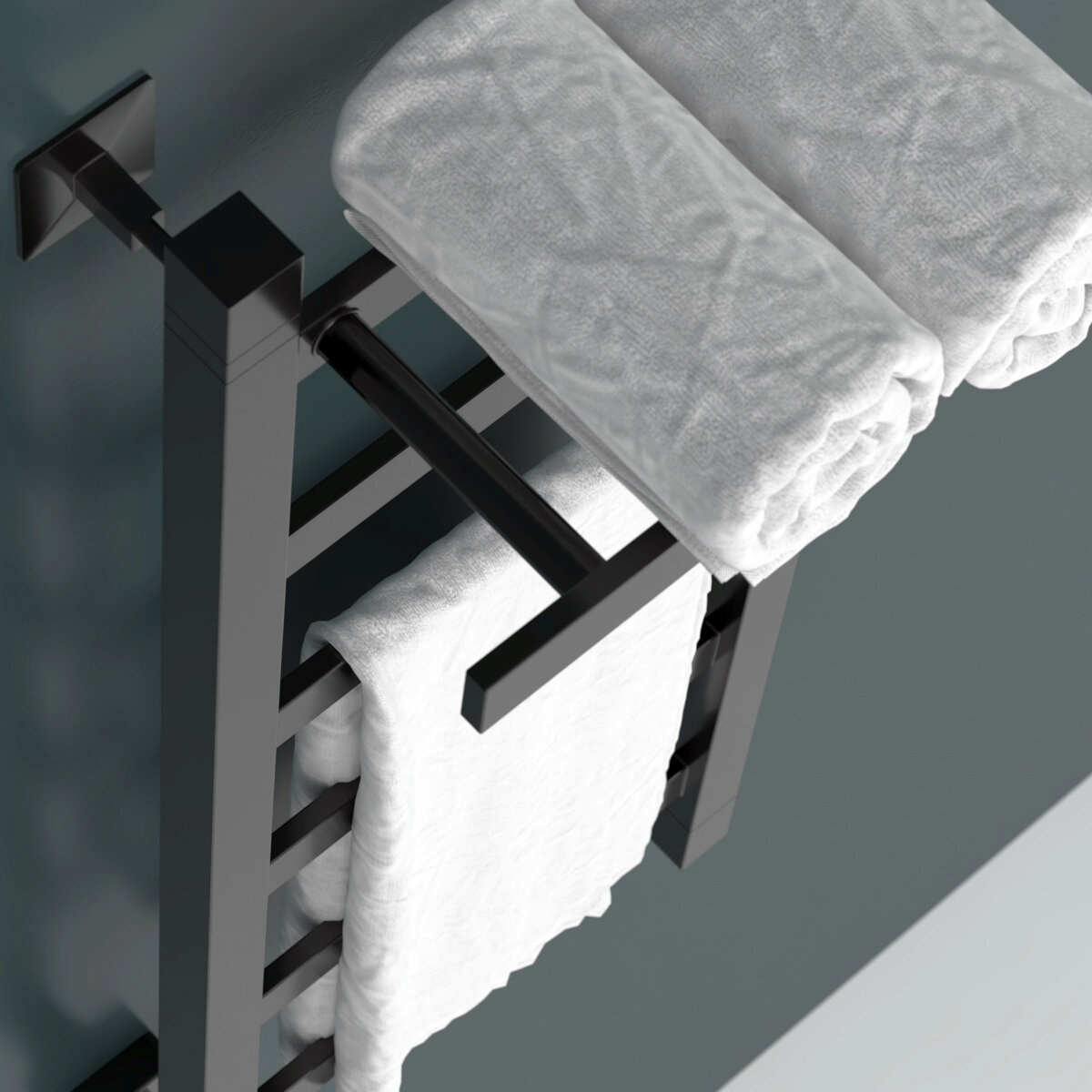Водяной полотенцесушитель Onix, модель Moon Plus Black 700x800, лесенка с полкой с нижним подключением, черный, полный комплект