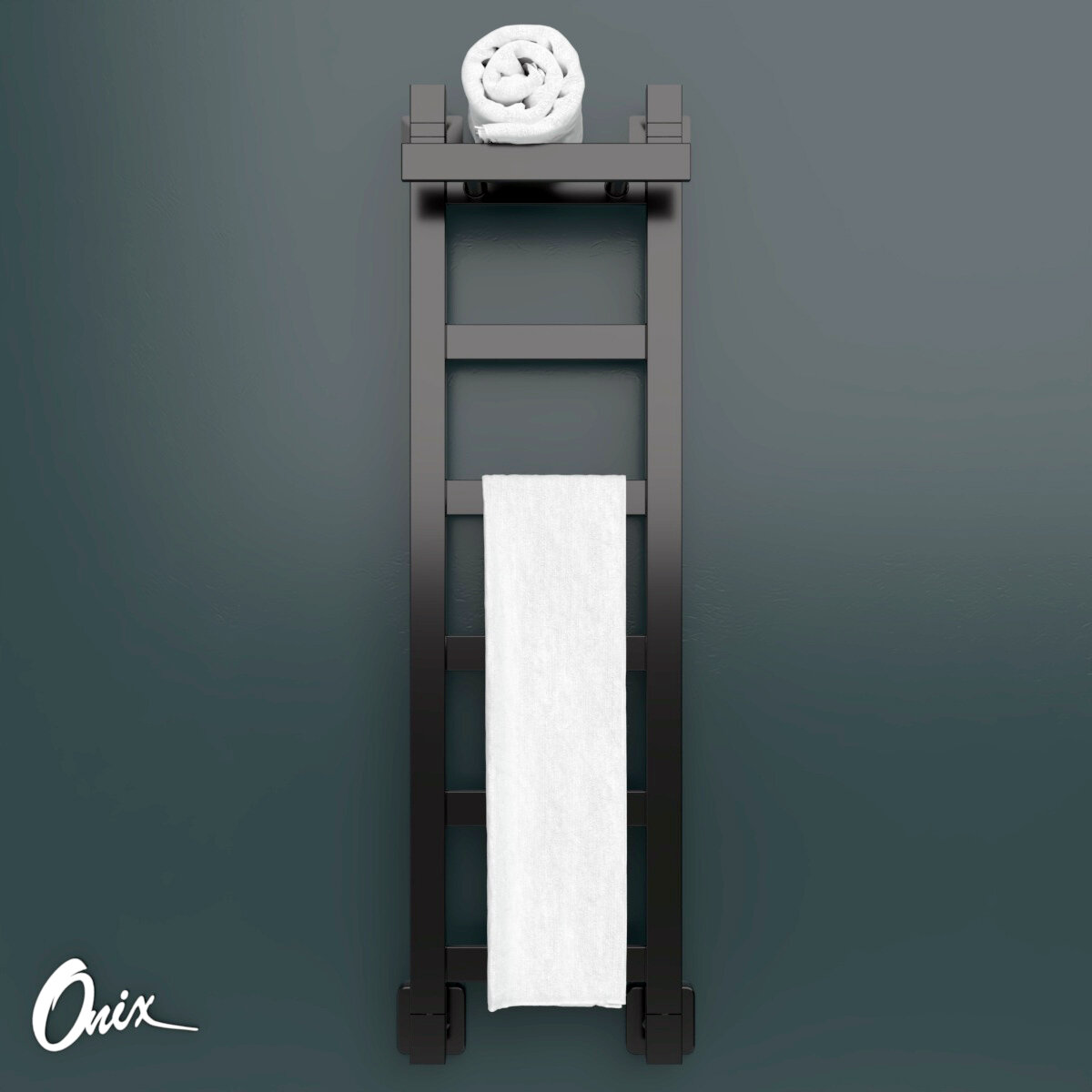 Водяной полотенцесушитель Onix, модель Moon Plus Black 400x800, лесенка с полкой с нижним подключением, черный, полный комплект