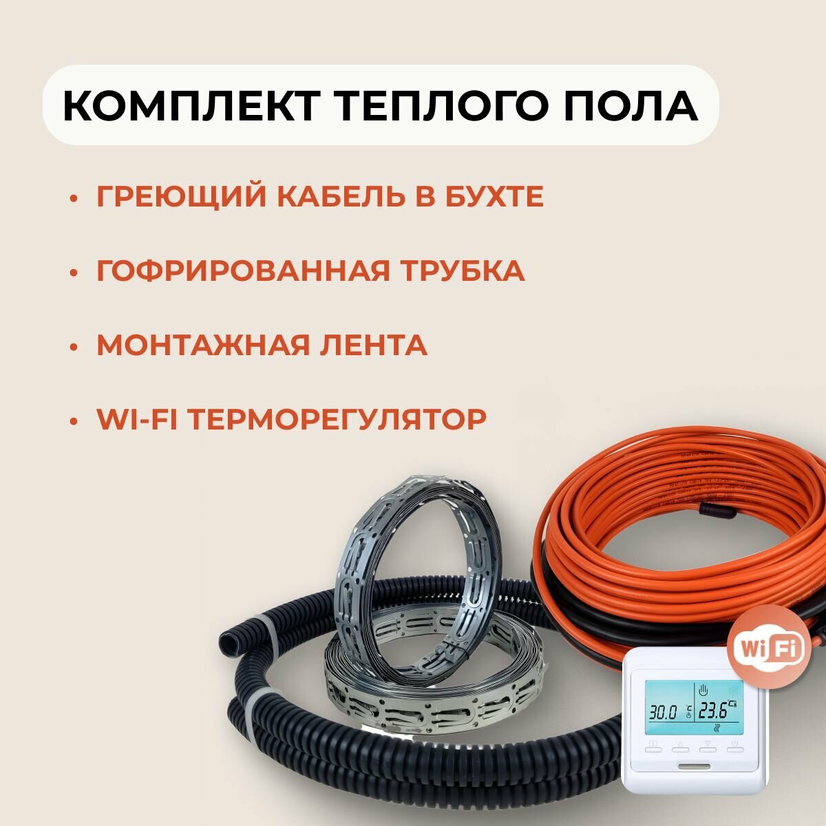 Теплый пол В стяжку или Плиточный клей 2400Вт (12,6-15,0 м. кв.) с Wi-Fi терморегулятором