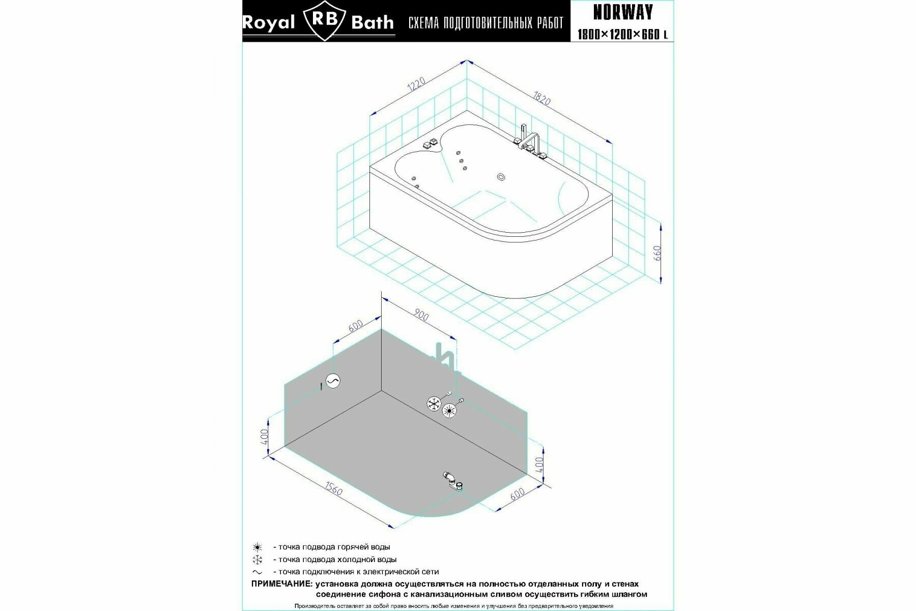 Royal Bath Акриловая ванна Royal Bath Norway RB331100 c каркасом 180х120х66 L