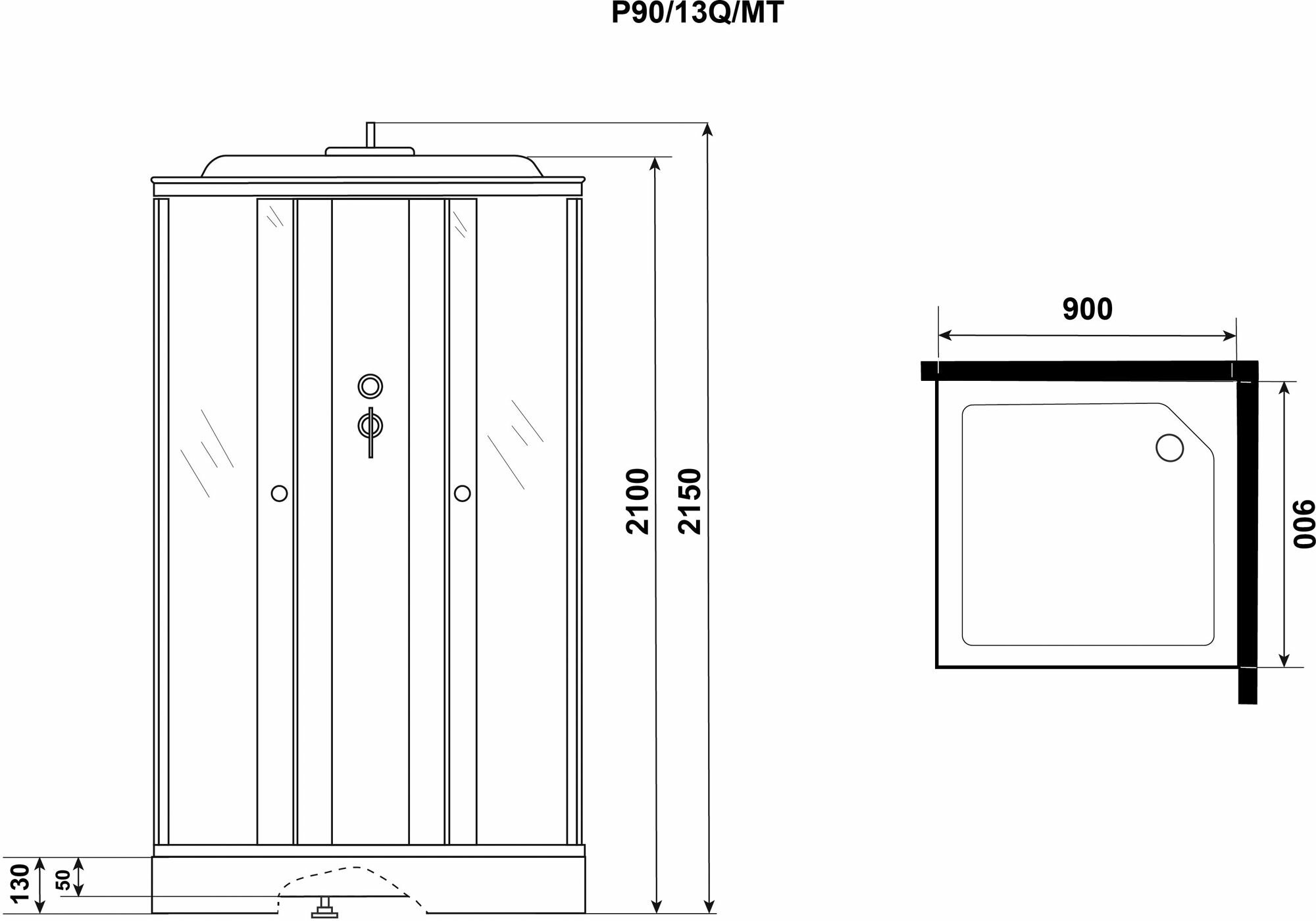 Душевая кабина Niagara Promo P90/13Q/MT/BK (90х90х200) 3 места