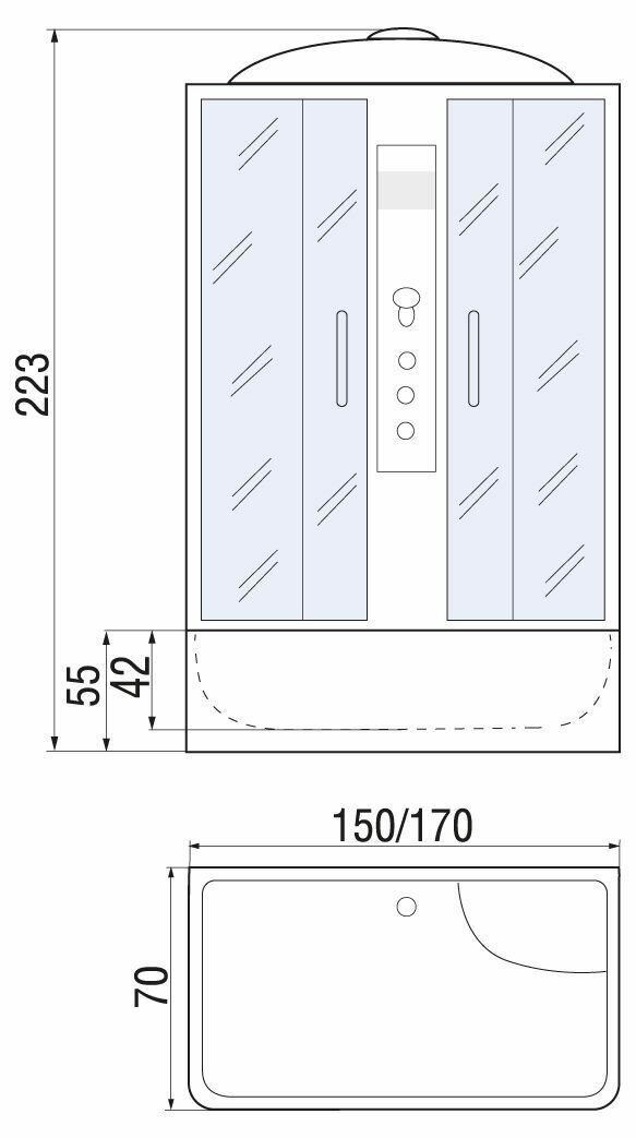 Душевая кабина River SENA (150x70) высокий поддон, стекло тонированное, универсальная