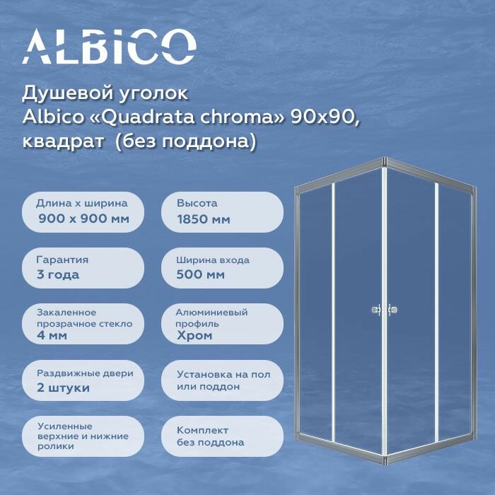 Душевой уголок без поддона Albico Quadrata chroma 90х90, (квадрат) интересное: