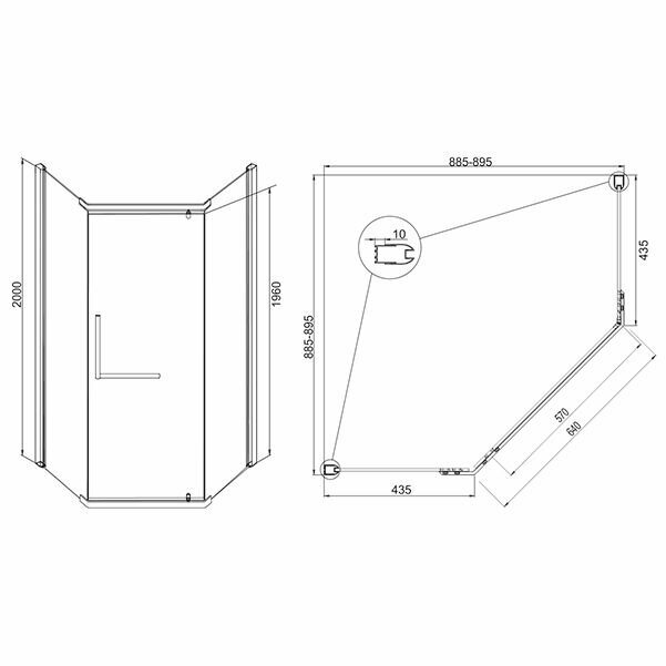 Душевое ограждение 90*90 см. Aurora 90 из закаленного стекла 6 мм. с распашной дверью. Профиль и аксессуары хром (без поддона) интересное: