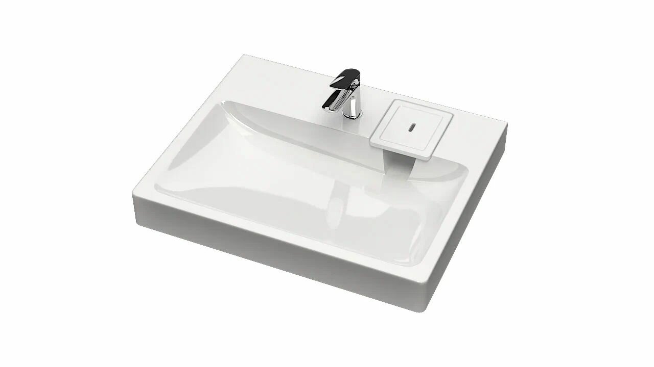 Раковина над стиральной машиной BAU Nimb 60х60, литьевой мрамор в комплекте с кронштейнами и сифоном, белый глянец