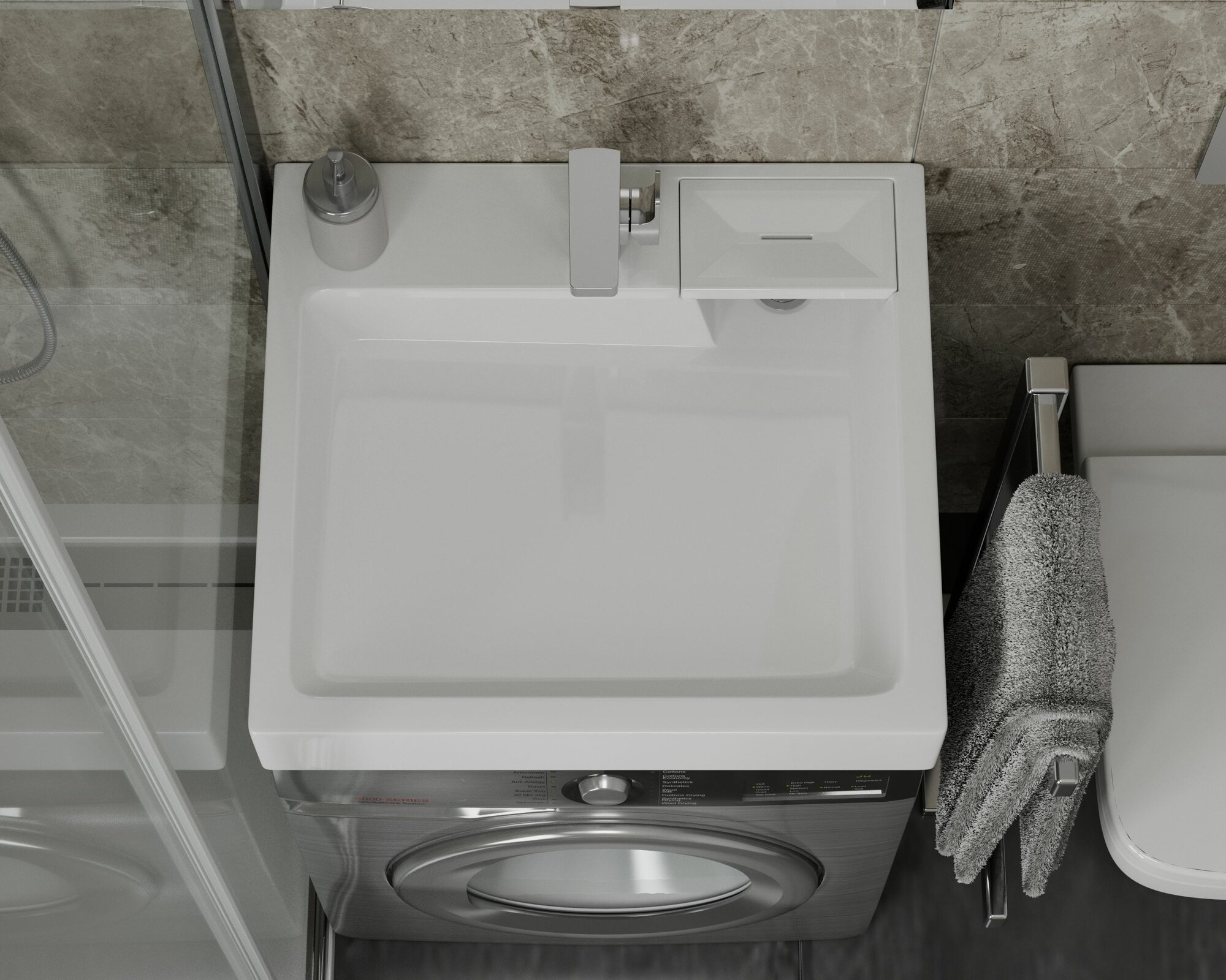 Раковина над стиральной машиной BAU Nimb 60х55, литьевой мрамор в комплекте с кронштейнами и сифоном , белый глянец