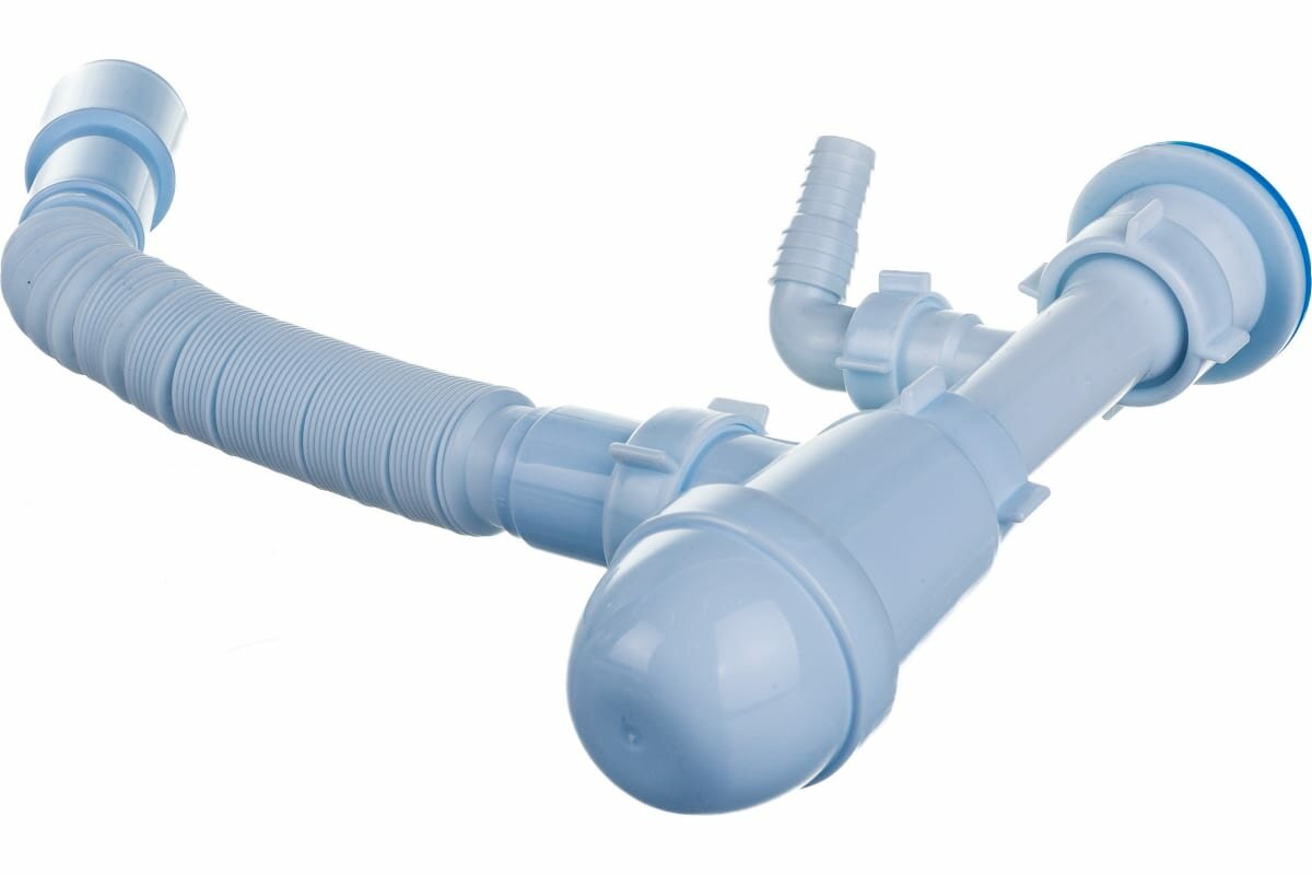 Сифон для мойки АНИ пласт C0315, 1 1/2"х40мм, с отводной гибкой трубой 40х40/50, с отводом для бытовой техники