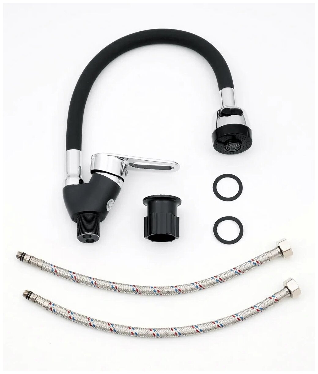 Смеситель для кухни Эверест B58-274F с гибким изливом, картридж 35 мм, чёрный, крепление гайка