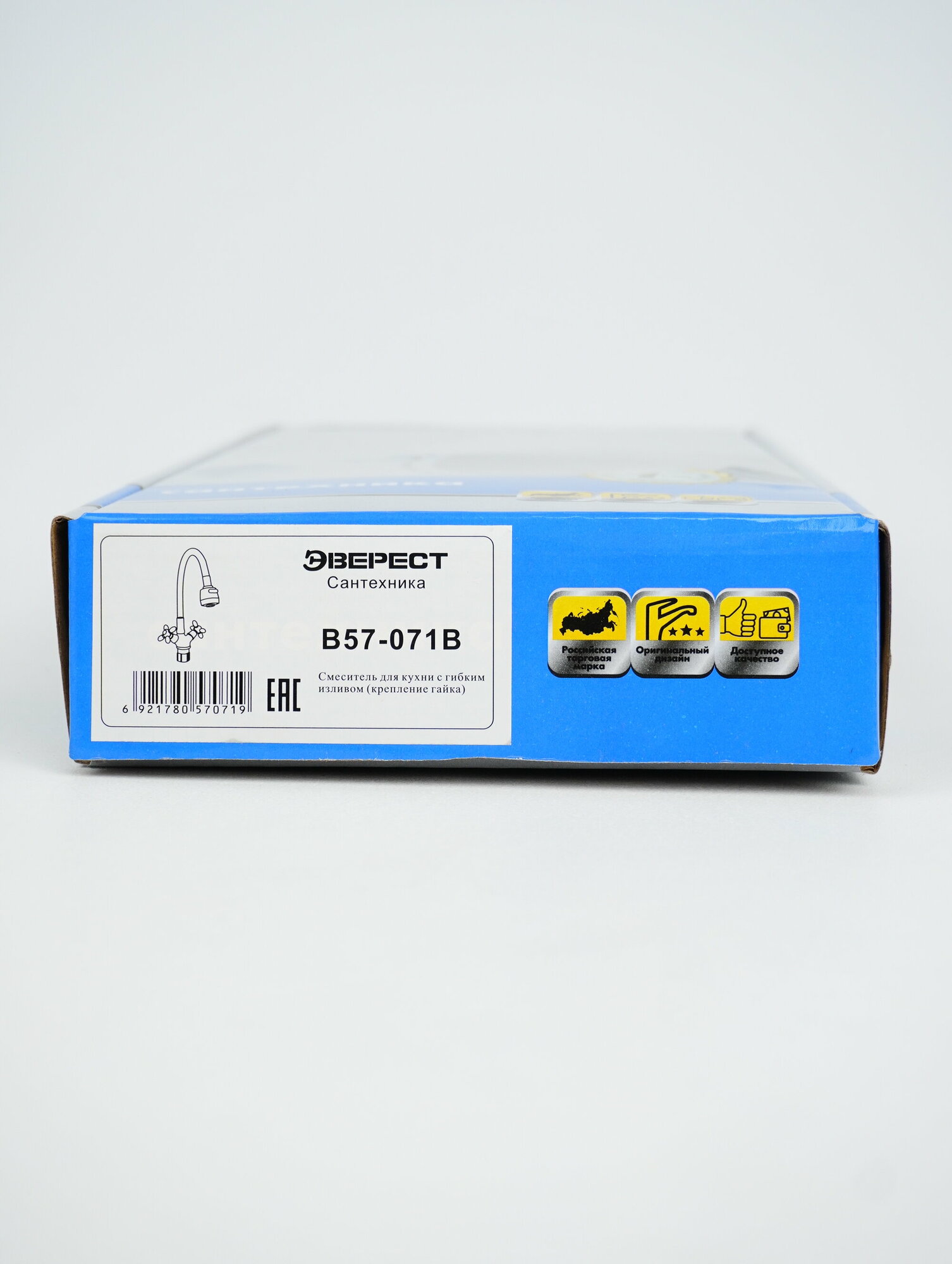 Смеситель для кухни Эверест B58-274A с гибким изливом, картридж 35 мм, белый, крепление гайка