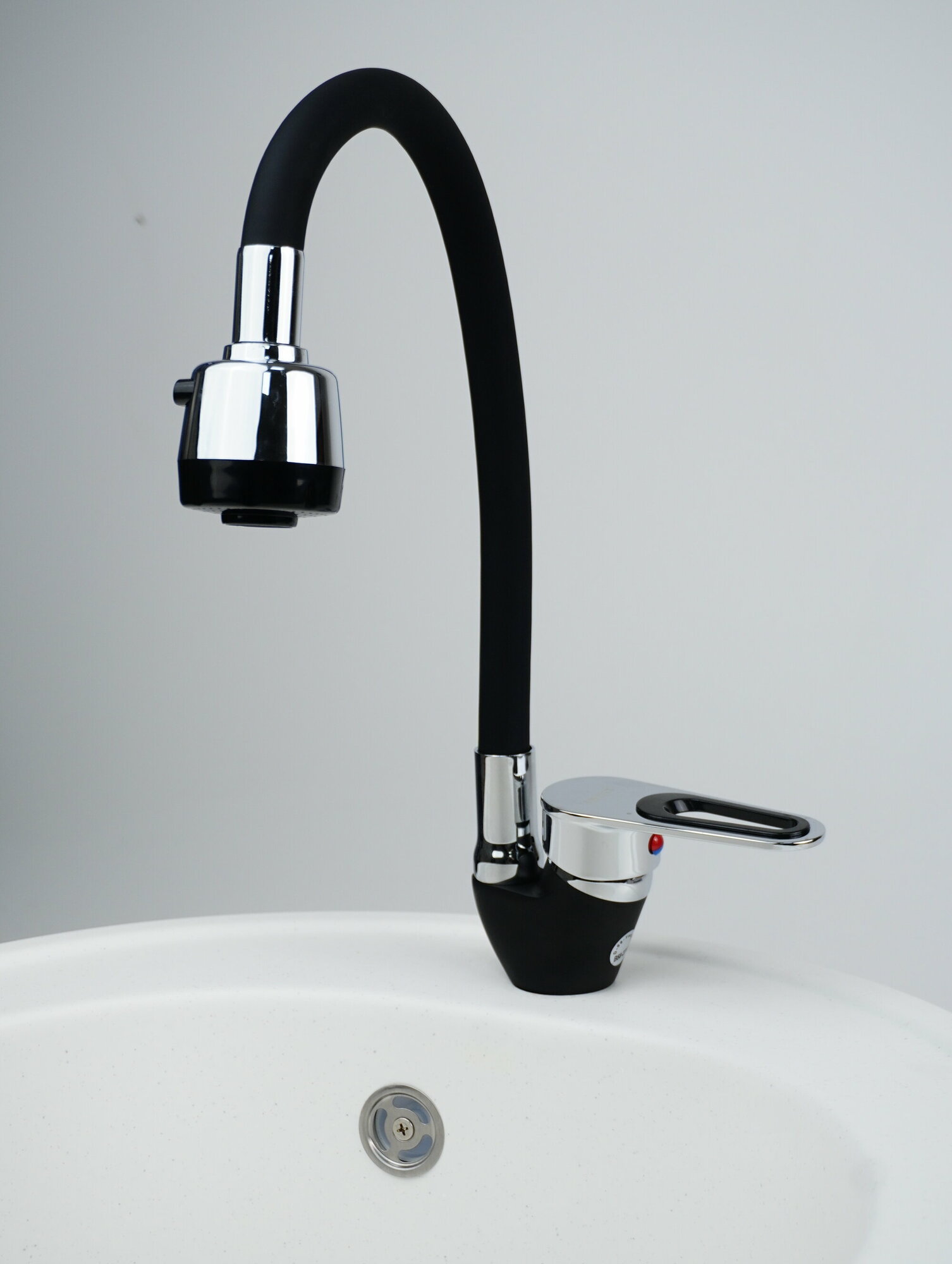 Смеситель для кухни с гибким изливом черный Эверест B58-274F
