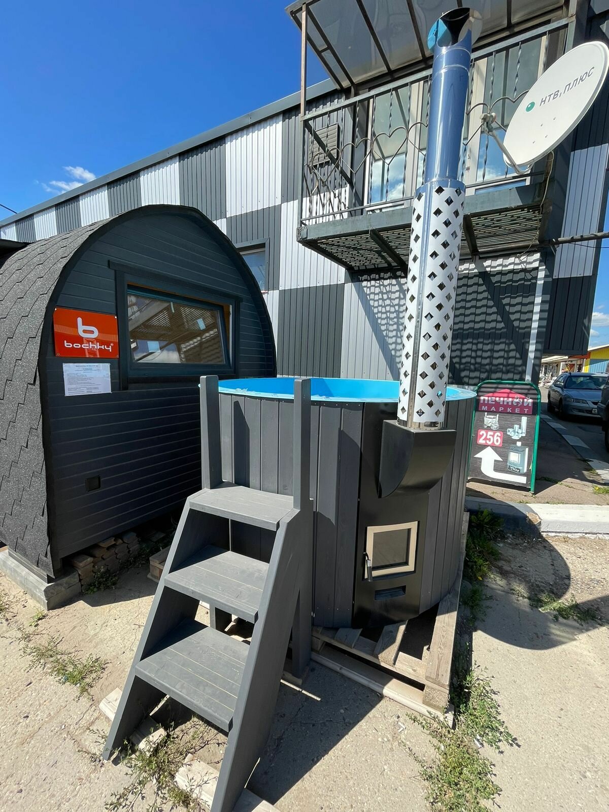 Уличная купель Plazar со встроенной печью, лиственница, на 4-6 человек, серый интересное: