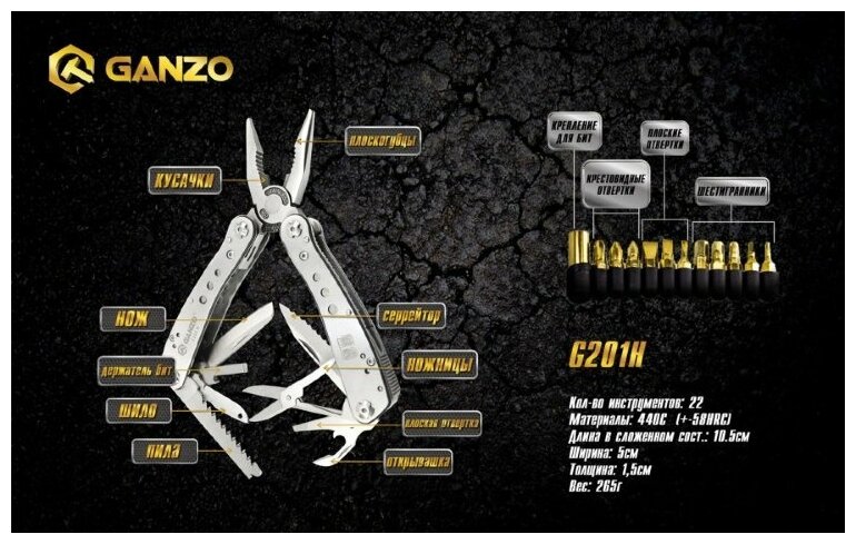 СохранитьМультиинструмент Ganzo G201-H интересное: