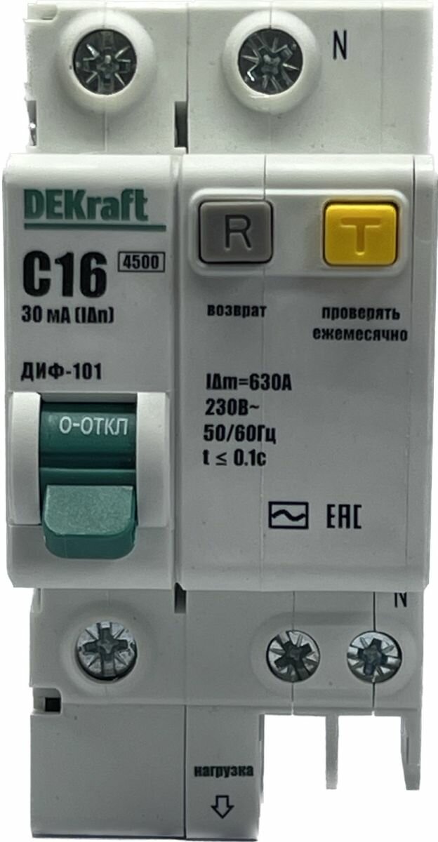 Выключатель автоматический дифференциального тока Dekraft ДИФ-101 АВДТ 1п+N 16А (C) 30мА тип AC 4,5кА