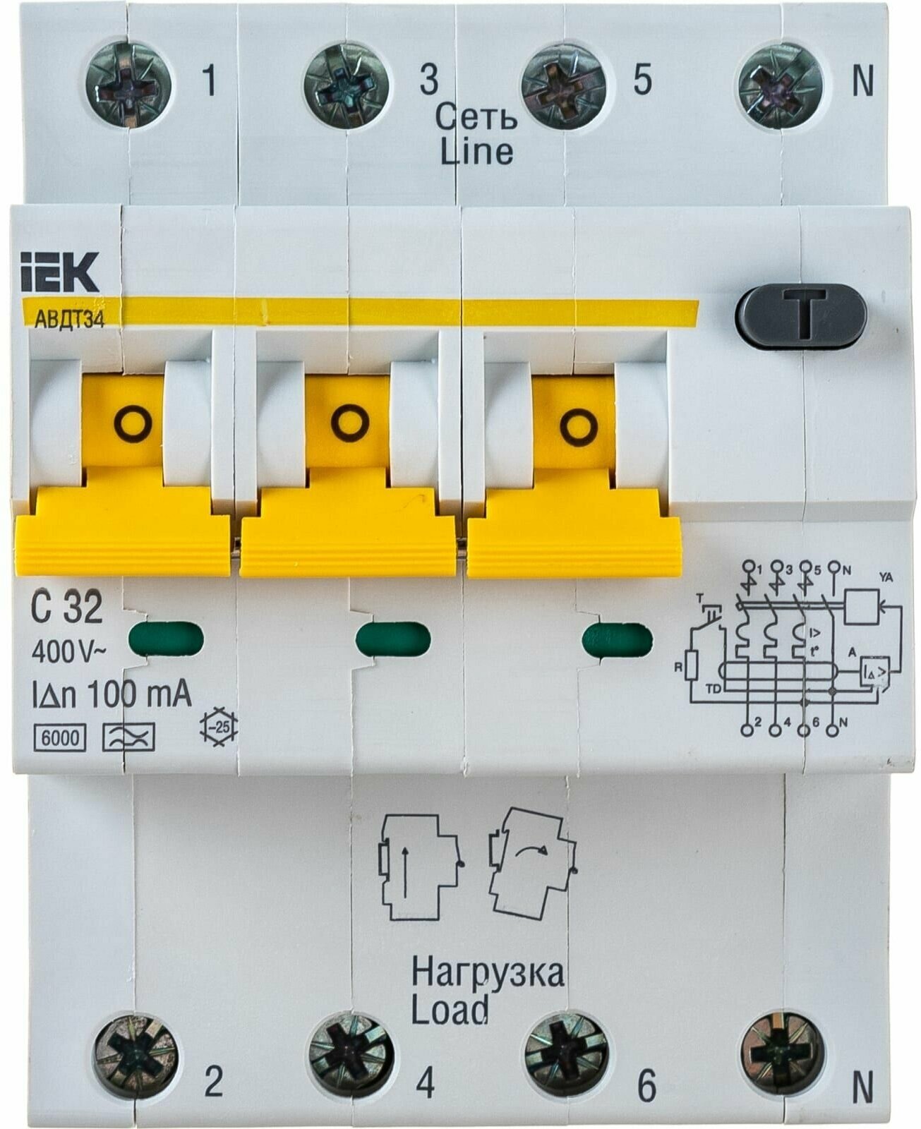 Выключатель автоматический дифференциального тока 4п (3P+N) C 32А 100мА тип A 6кА АВДТ-34, IEK MAD22-6-032-C-100 (1 шт.)