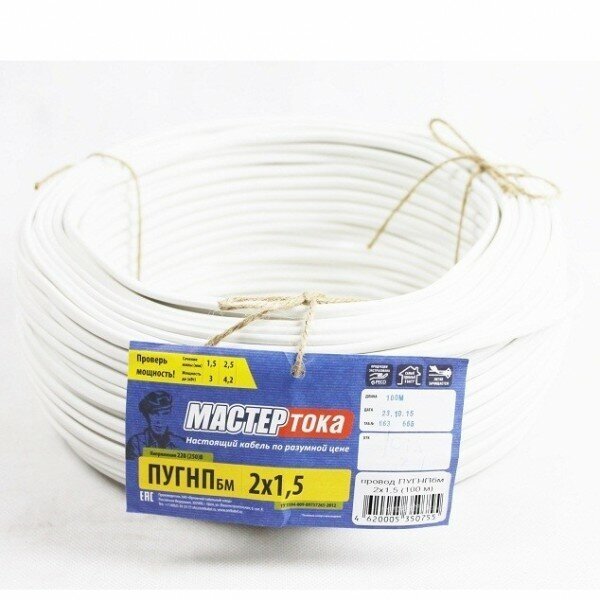 Кабель пугнпбм Мастер Тока 2x1.5 бел (100) МТ1319