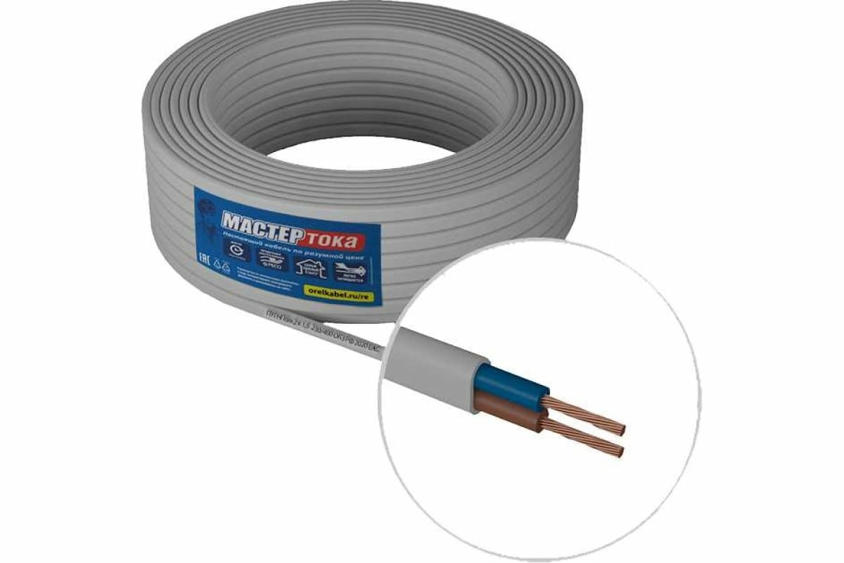 Мастер Тока Провод пугнпбм 2х1.5 бел 50 м МТ1331/МТП1988