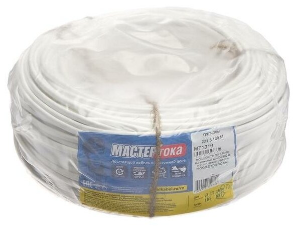 Провод пугнпбм 2Х1.5 бел 20м Мастер Тока ТУ