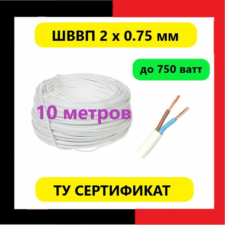 Провод ШВВП 2 х 0.75 ТУ (10 метров) Кабель шнур 2 на 0.75 интересное: