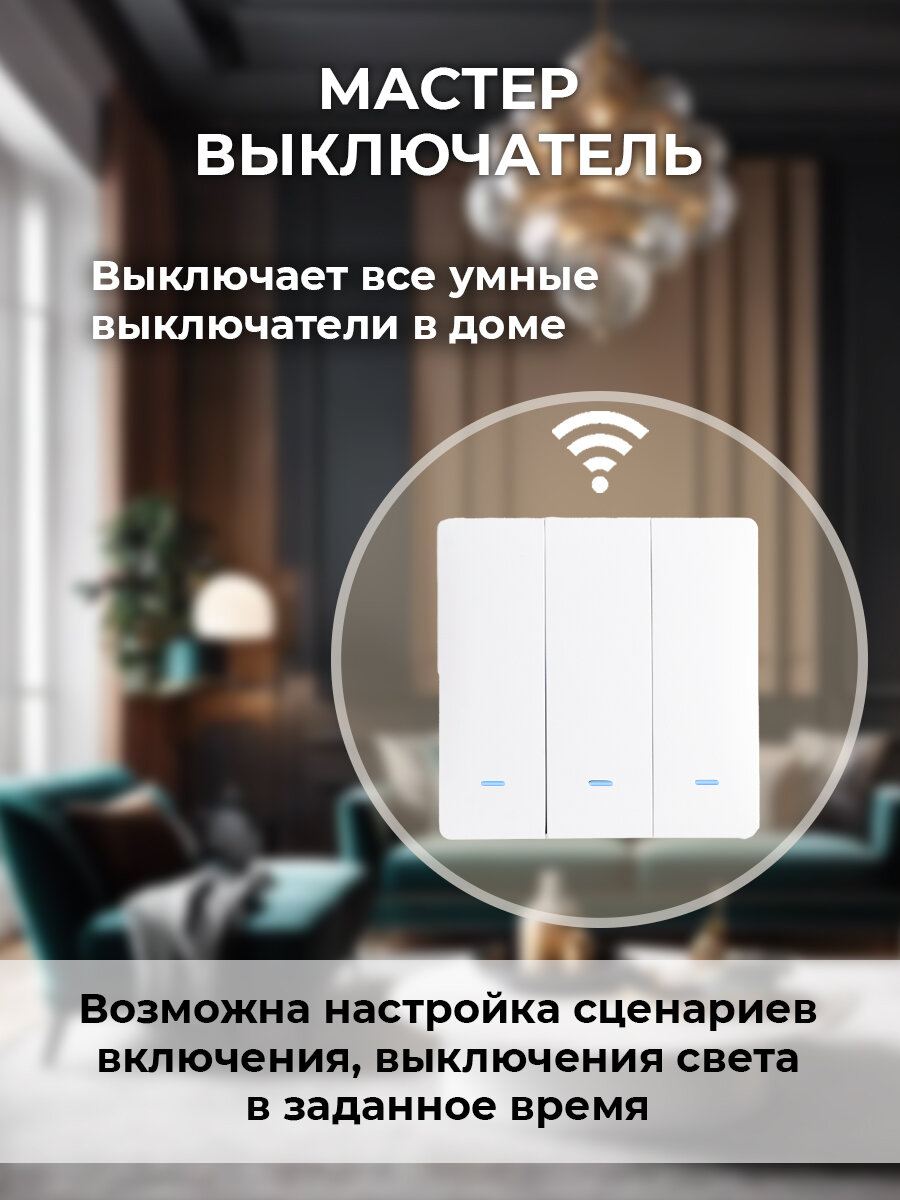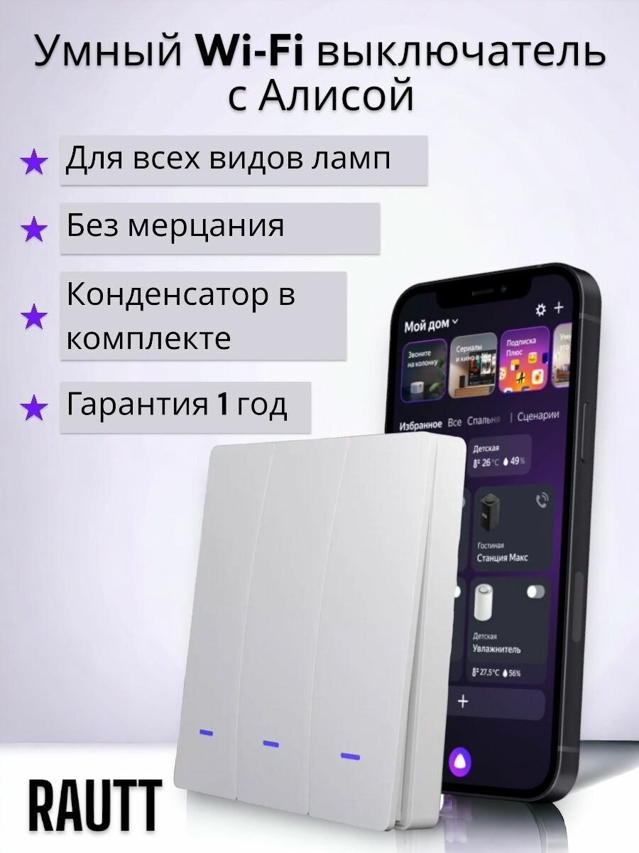 Умный WiFi выключатель с Алисой, 3 клавиши, белый, Tuya Smart Life интересное: