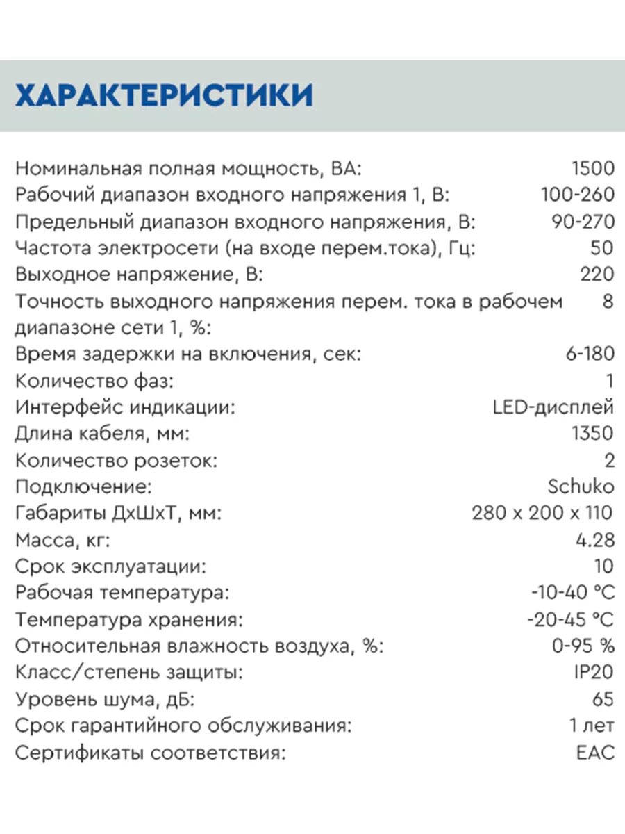 Стабилизатор напряжения для газового котла AVR BOILER 1500RW