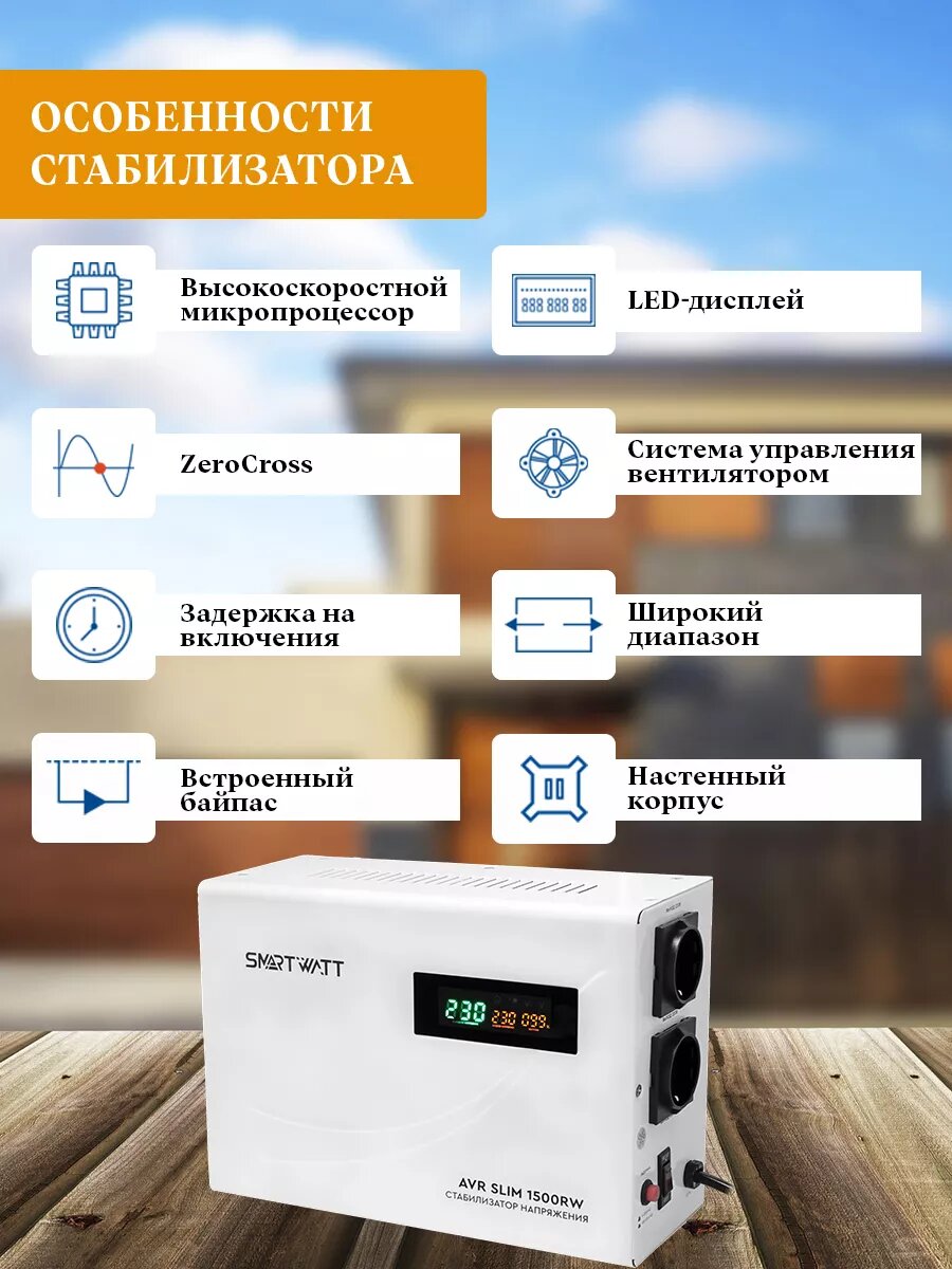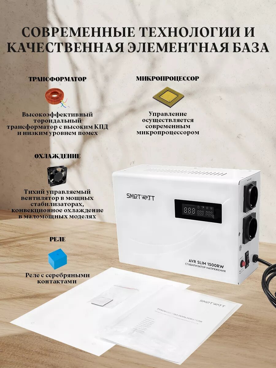 СохранитьНастенный стабилизатор напряжения Smartwatt AVR SLIM 1500RW интересное: