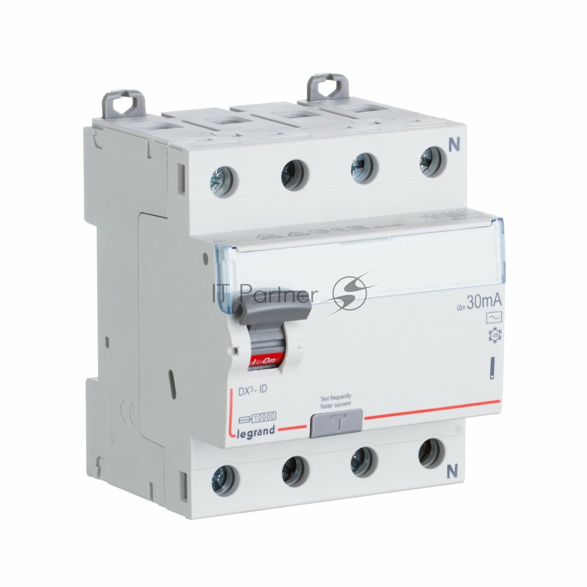 DX3 Блок утечки тока (УЗО) 4-полюсный, 25A, 30mA, тип АC Legrand, 411702