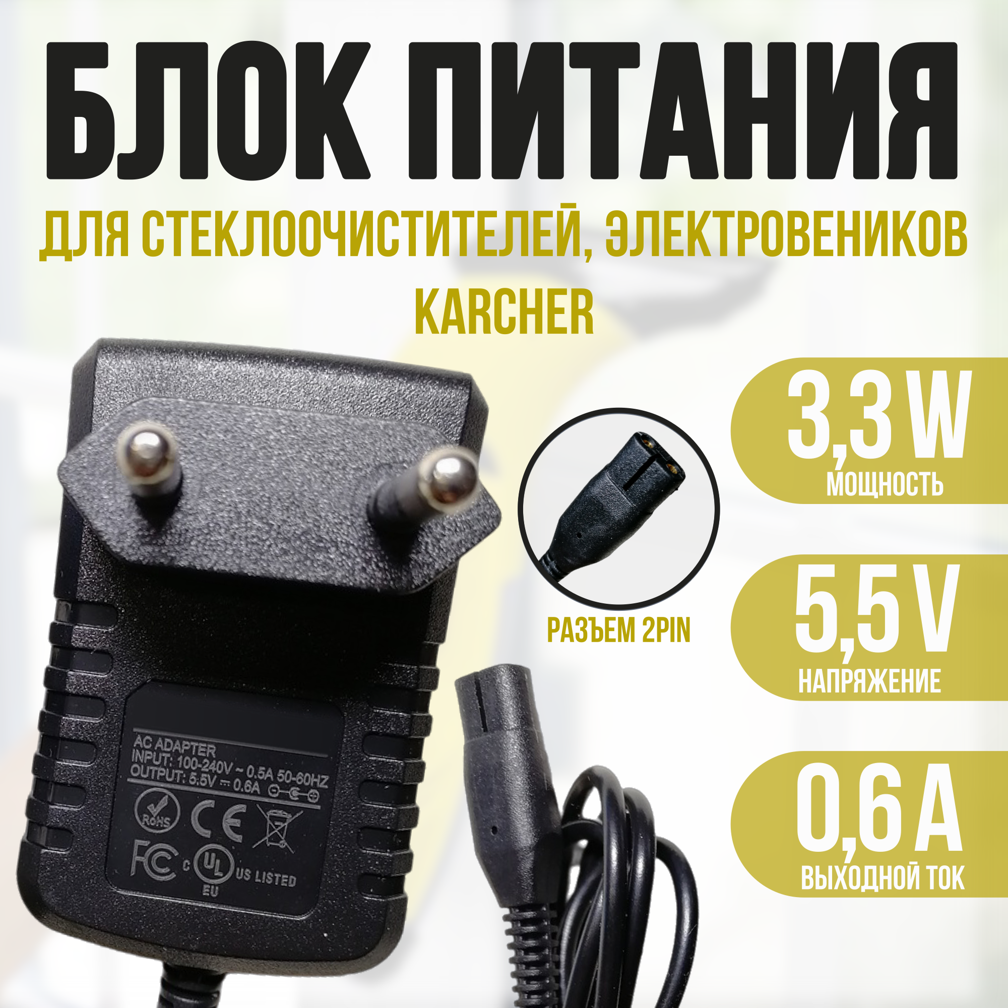 Блок питания для стеклоочистителей, электровенников Karcher серии WV, серии KВ 5.5v 0.6a интересное: