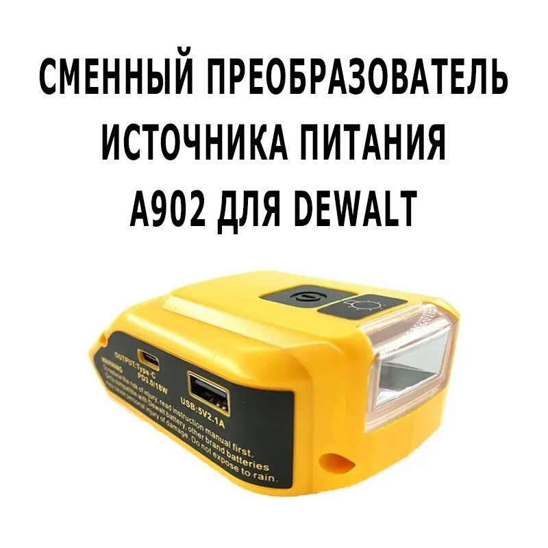Сменный преобразователь источника питания A902 для Dewalt (с фонариком) интересное: