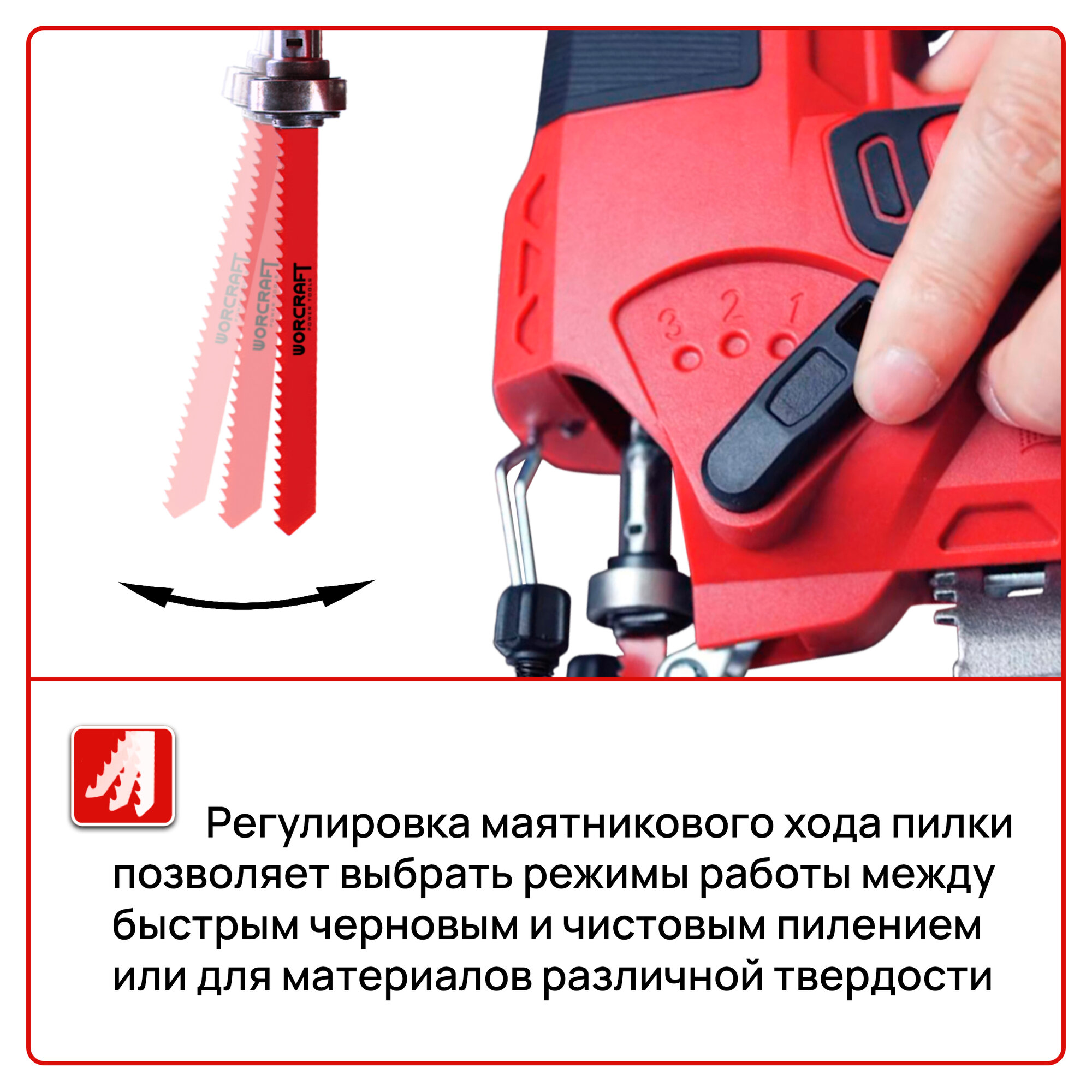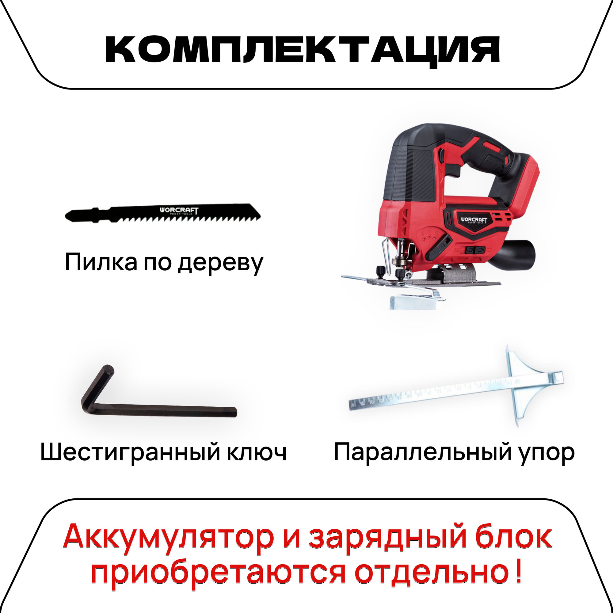 WORCRAFT Электролобзик аккумуляторный 20V, 600Вт, 2500 ход/мин. Лобзик по дереву и металлу. интересное: