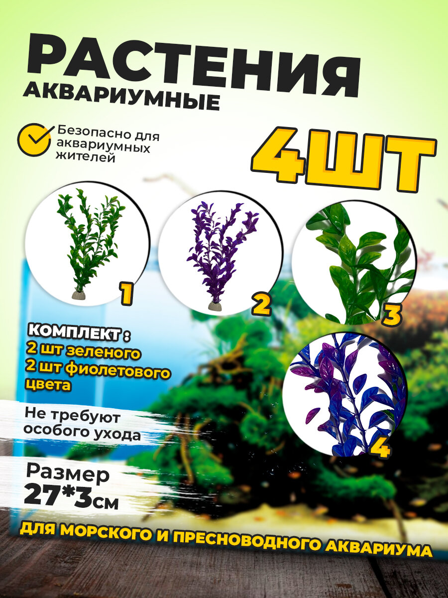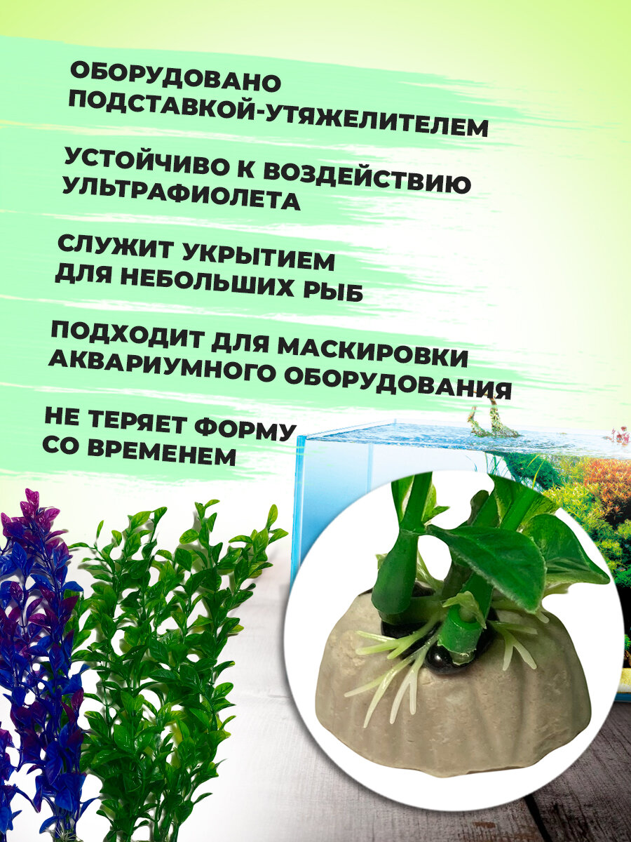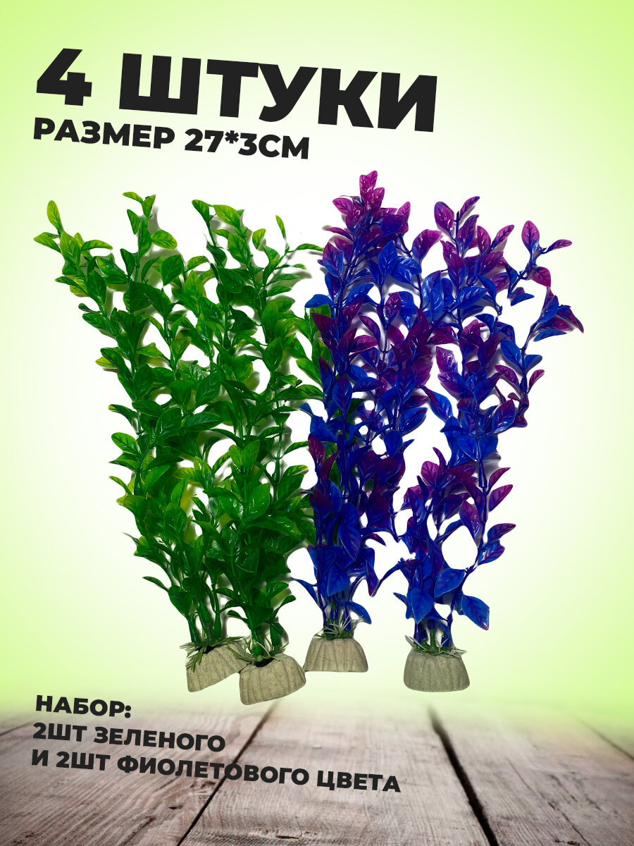 Набор пластиковых аквариумных растений 4 шт, высота 25 см. интересное: