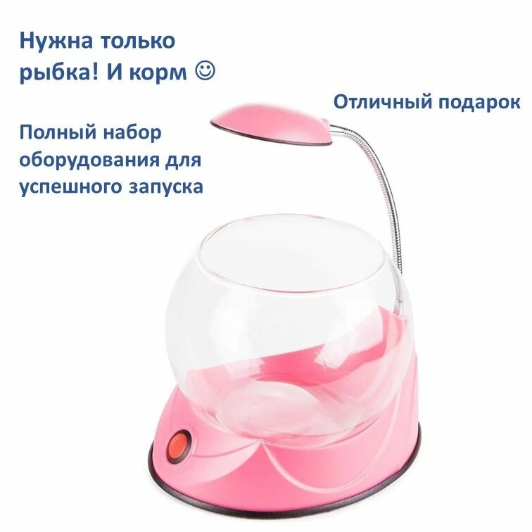 Круглый аквариум для рыбок с LED-подсветкой и грунтом, 1,8 л розовый интересное: