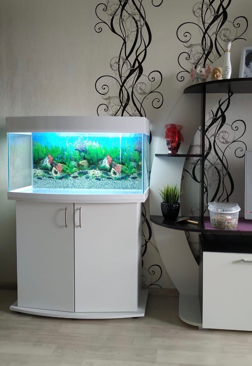 СохранитьАквариум 80 л Панорамный AquariumBest с тумбой цвет Белый глянец 64х35х44 (ДхШхВ) интересное: