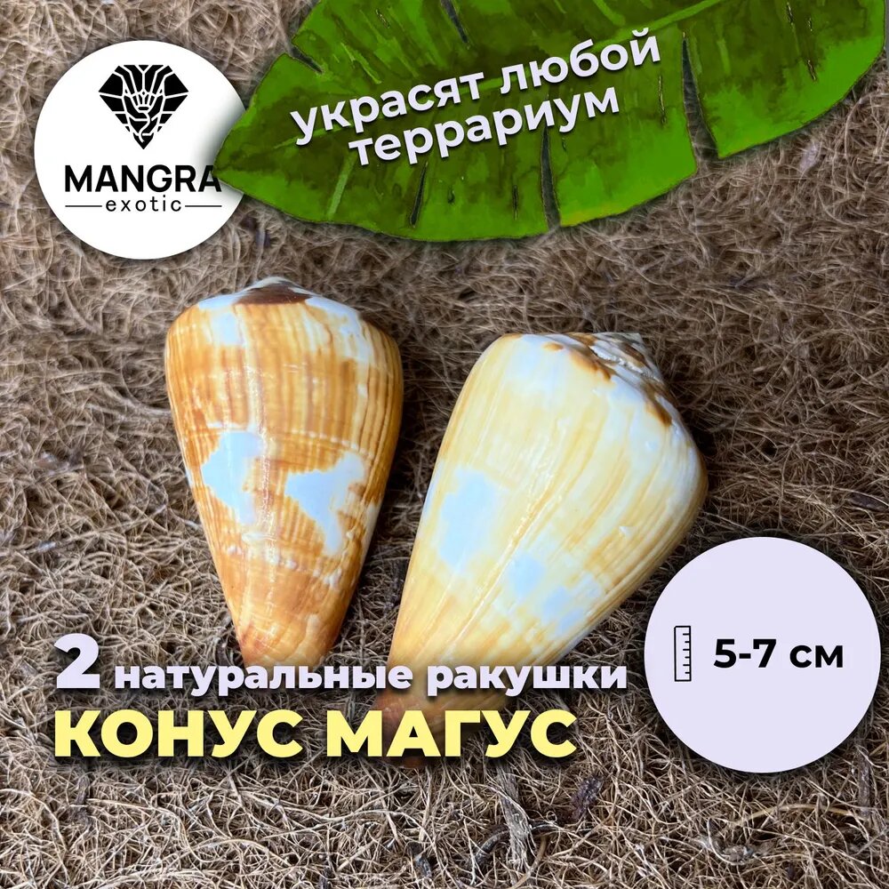 Купить 2 натуральные ракушки MANGRA exotic Конус Магус (5-7 см) - декор для террариума + укрытие для насекомых, морских черепашек, рачков и крабов