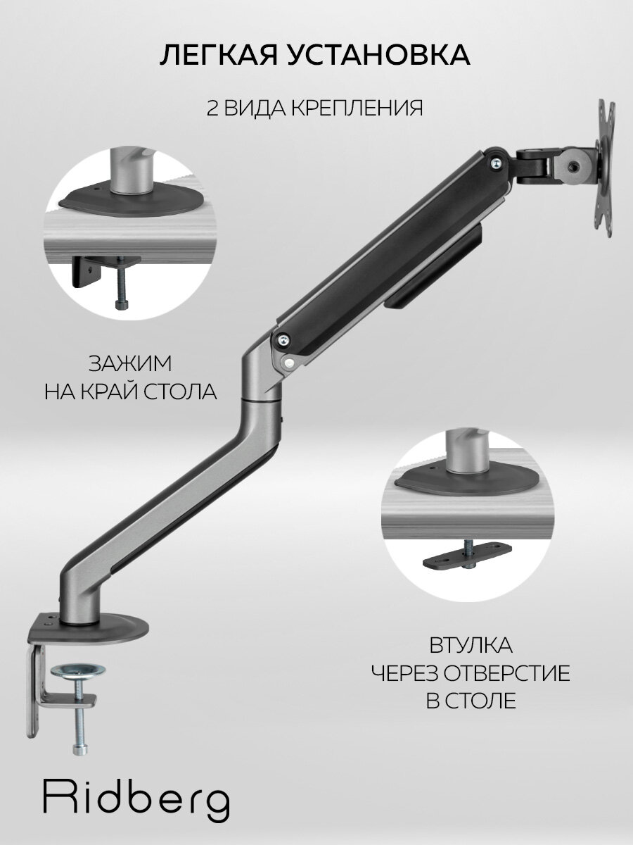Кронштейн для монитора 17"-32" Ridberg Monitor Arm LDT63-C012 (Space Grey) интересное: