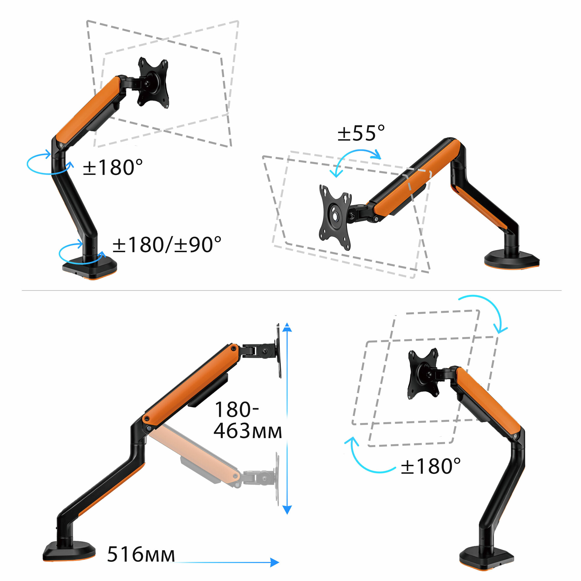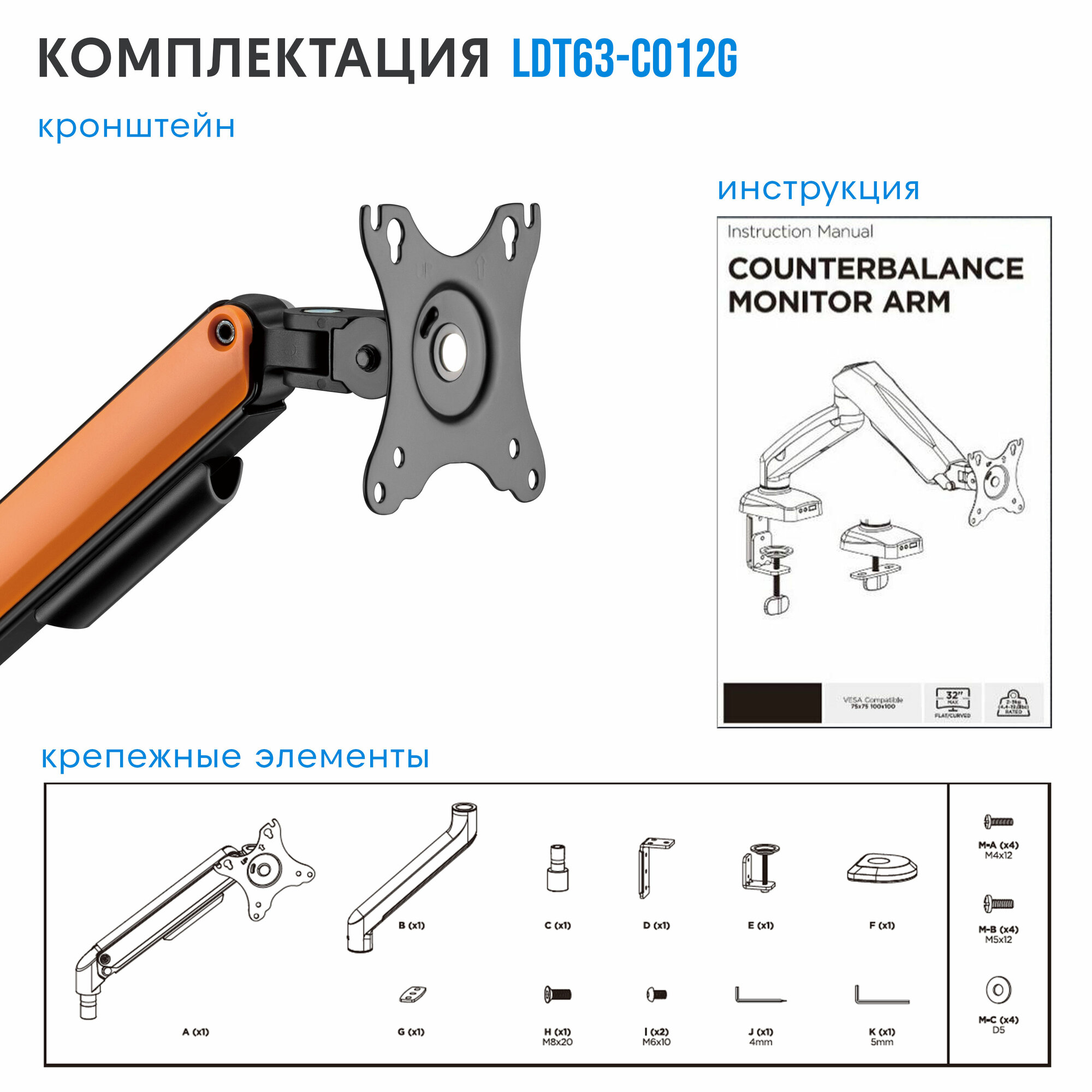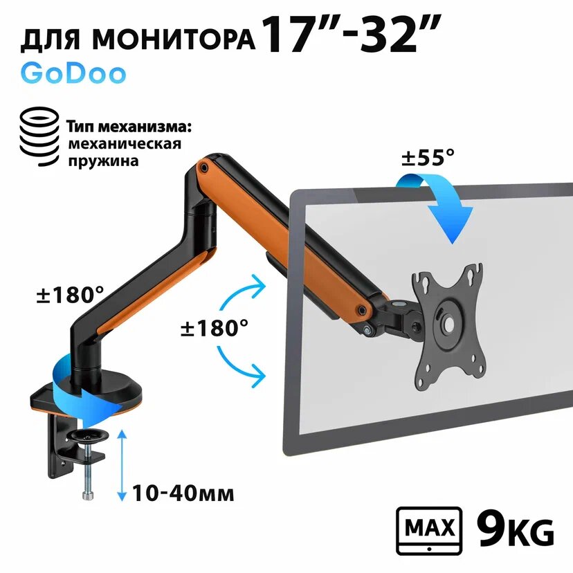 Кронштейн для монитора Godoo 17"-32" дюймов настольный LDT63-C012G Matte Black & Orange интересное: