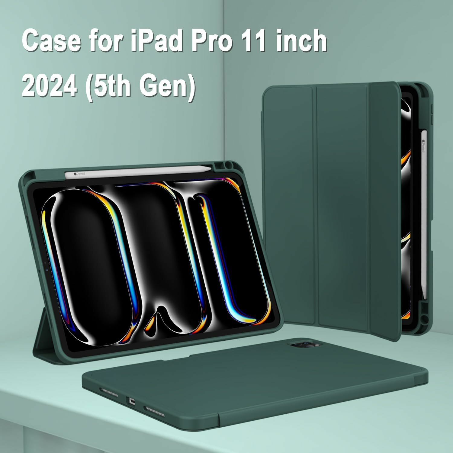 Купить Чехол для планшета iPad Pro 11" (M4, 2024) с местом для стилуса, темно-зеленый