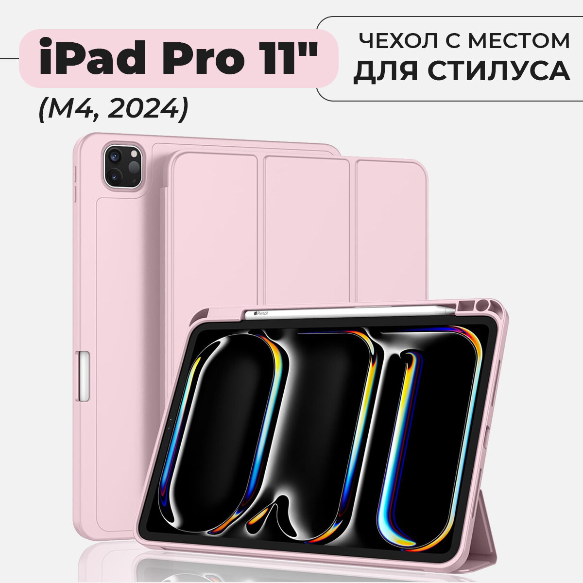 Чехол для планшета iPad Pro 11" (M4, 2024) с местом для стилуса, розовый интересное: