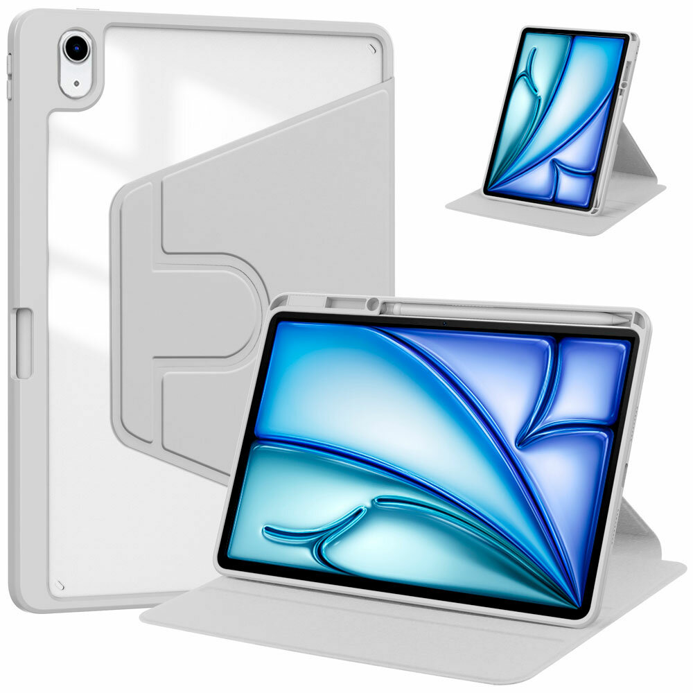 Купить Чехол для планшета Apple iPad Air 6 11'' M2 (2024), Air 5 10.9'' (2022), Air 4 10.9'' (2020), микрофибра, держатель для стилуса, поворотный 360 градусов (серый)
