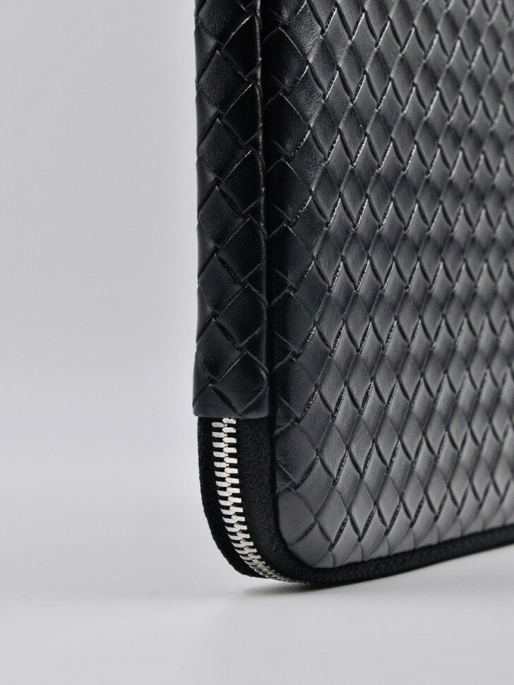Чехол на молнии DOST Leather Co. для MacBook Pro 14" (2021) / MacBook Air 13" (2018-2022) черный (плетеная кожа) интересное: