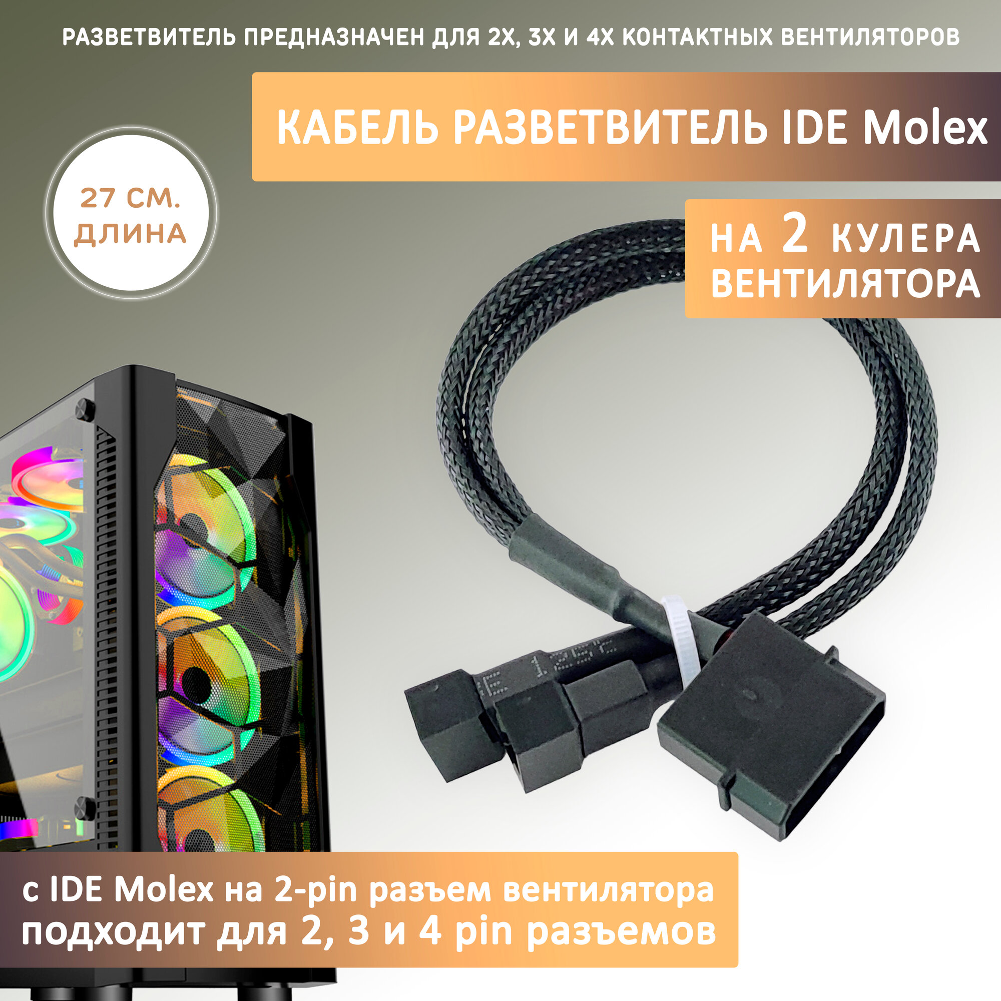 Кабель переходник/разветвитель на 2 кулера/вентилятора с IDE MOLEX. Удлинитель, 27см в оплетке интересное: