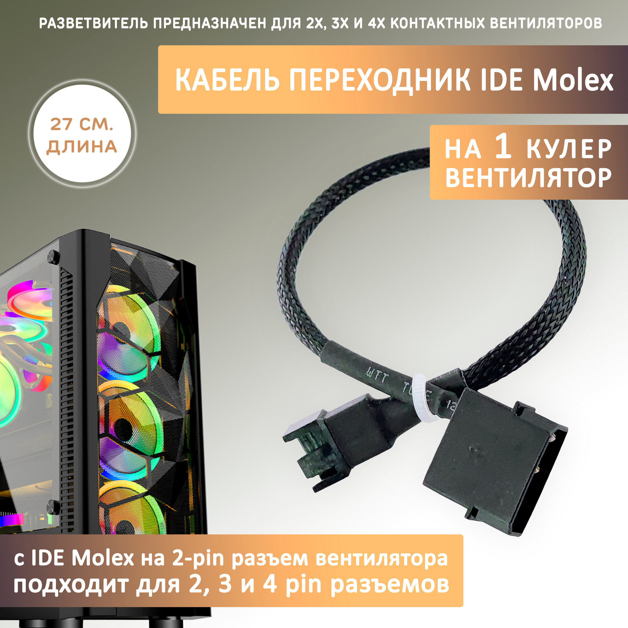 | Дополнительная информация | Кабель разветвитель/переходник для кулера/вентилятора с 2-pin IDE MOLEX (подходит так же для 3 и 4 pin) |