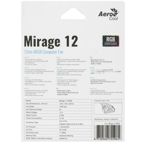 Вентилятор для корпуса Aerocool Mirage 12 ARGB 6-pin 4710562755961