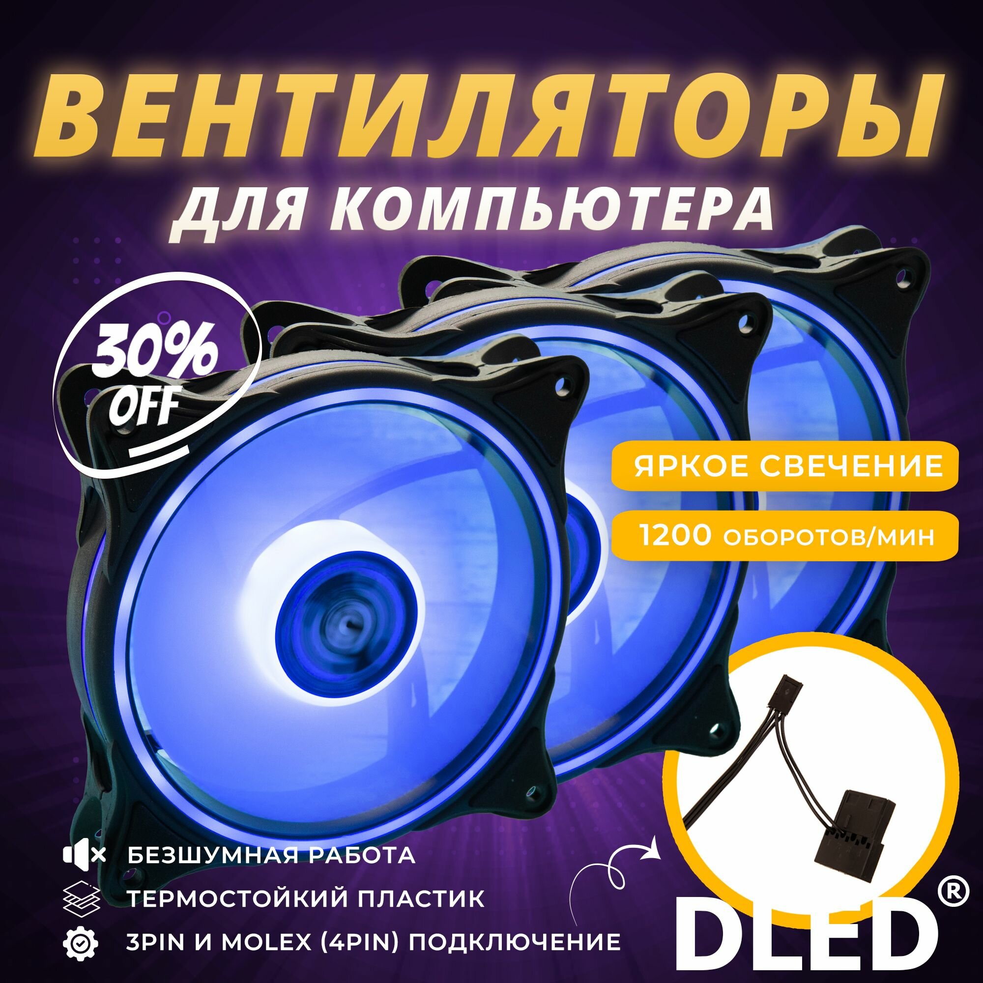 СохранитьКомплект 3шт: Компьютерный вентилятор для корпуса 120мм на 120мм светящийся "Синий" Кулер LED Molex 3 pin Яркий V3 интересное: