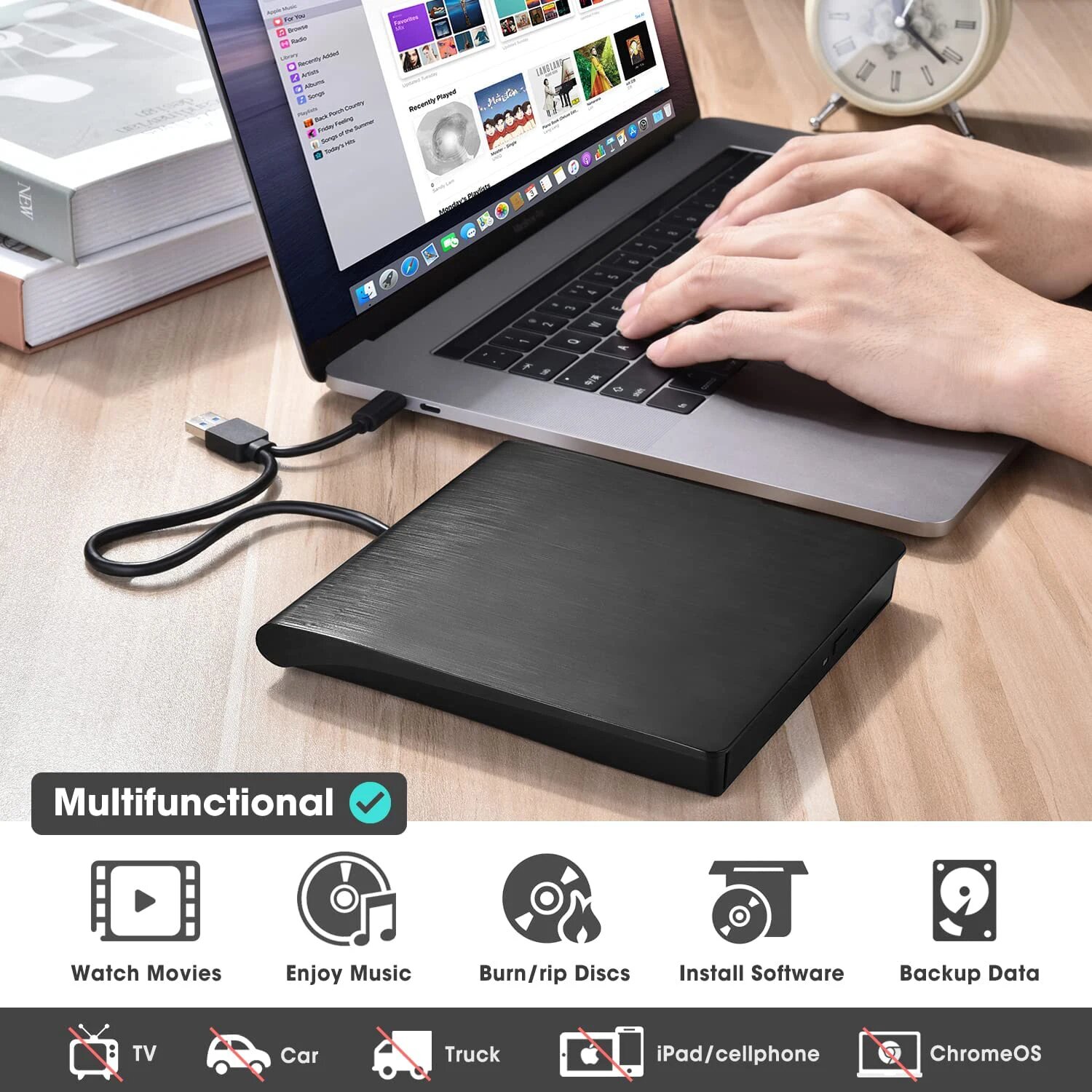 Внешний привод CD DVD RW USB 3.0 Type-C портативный CD/DVD, White интересное: