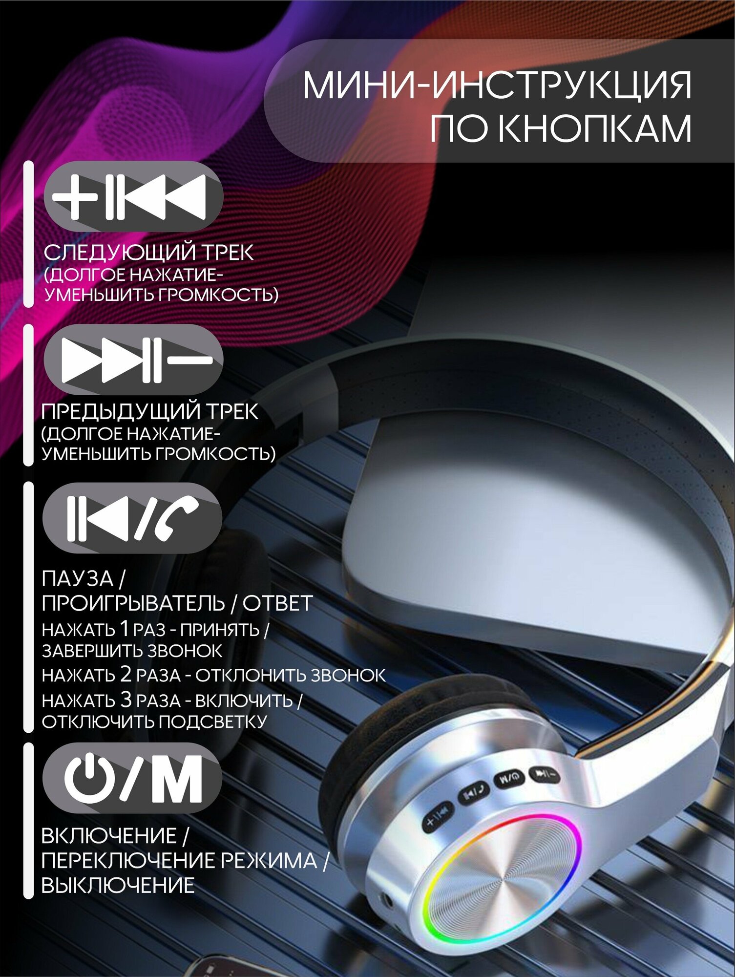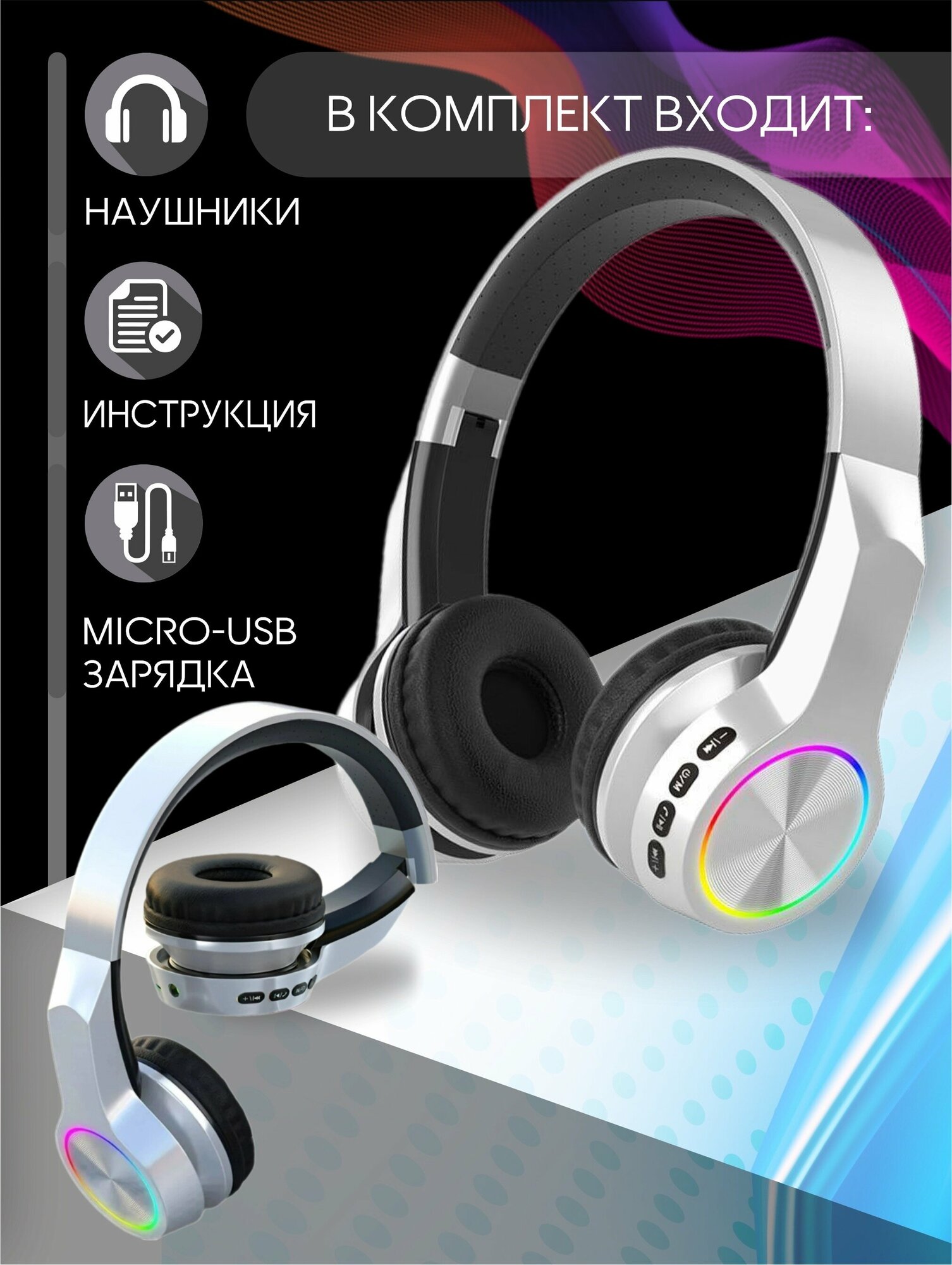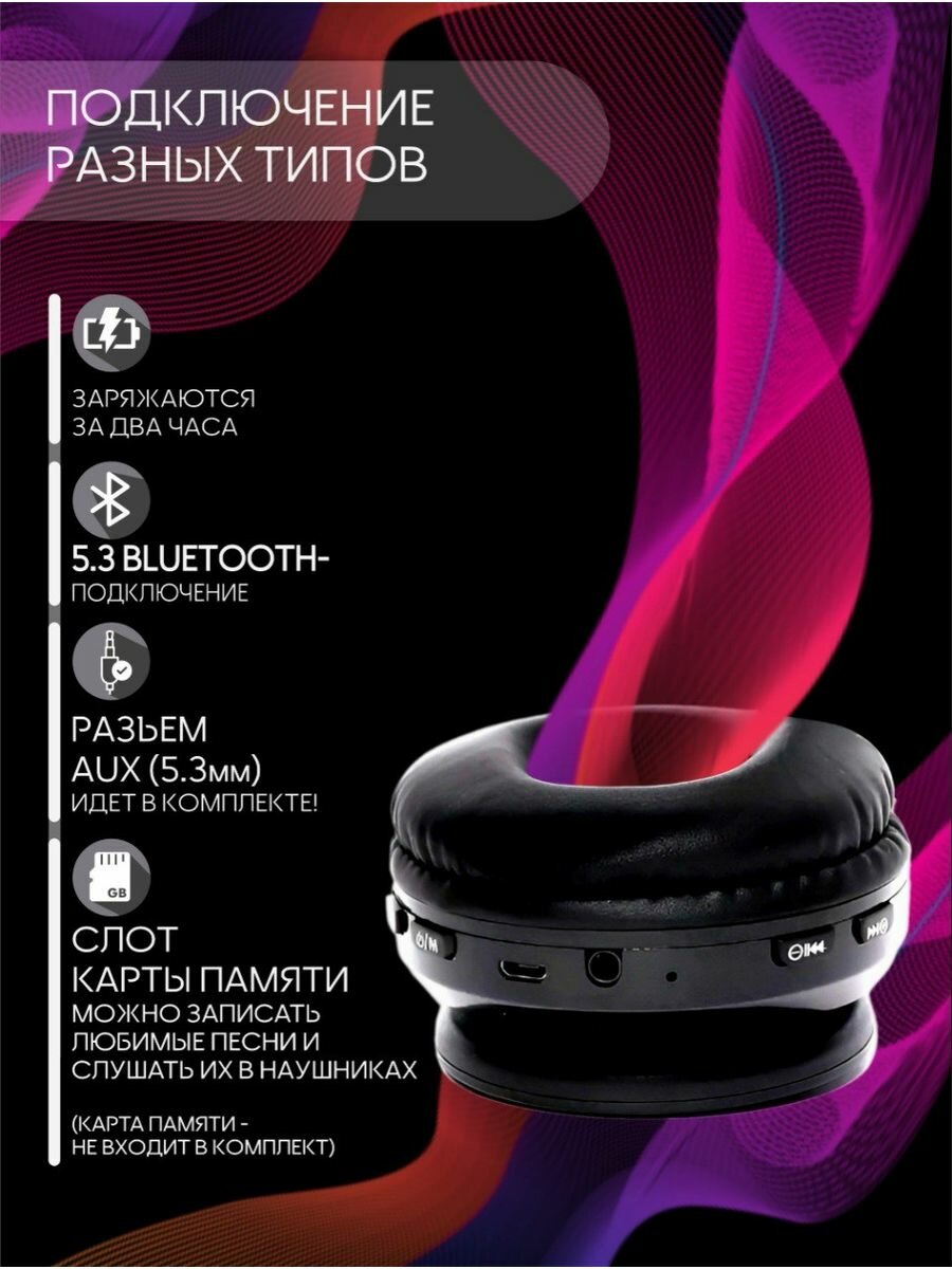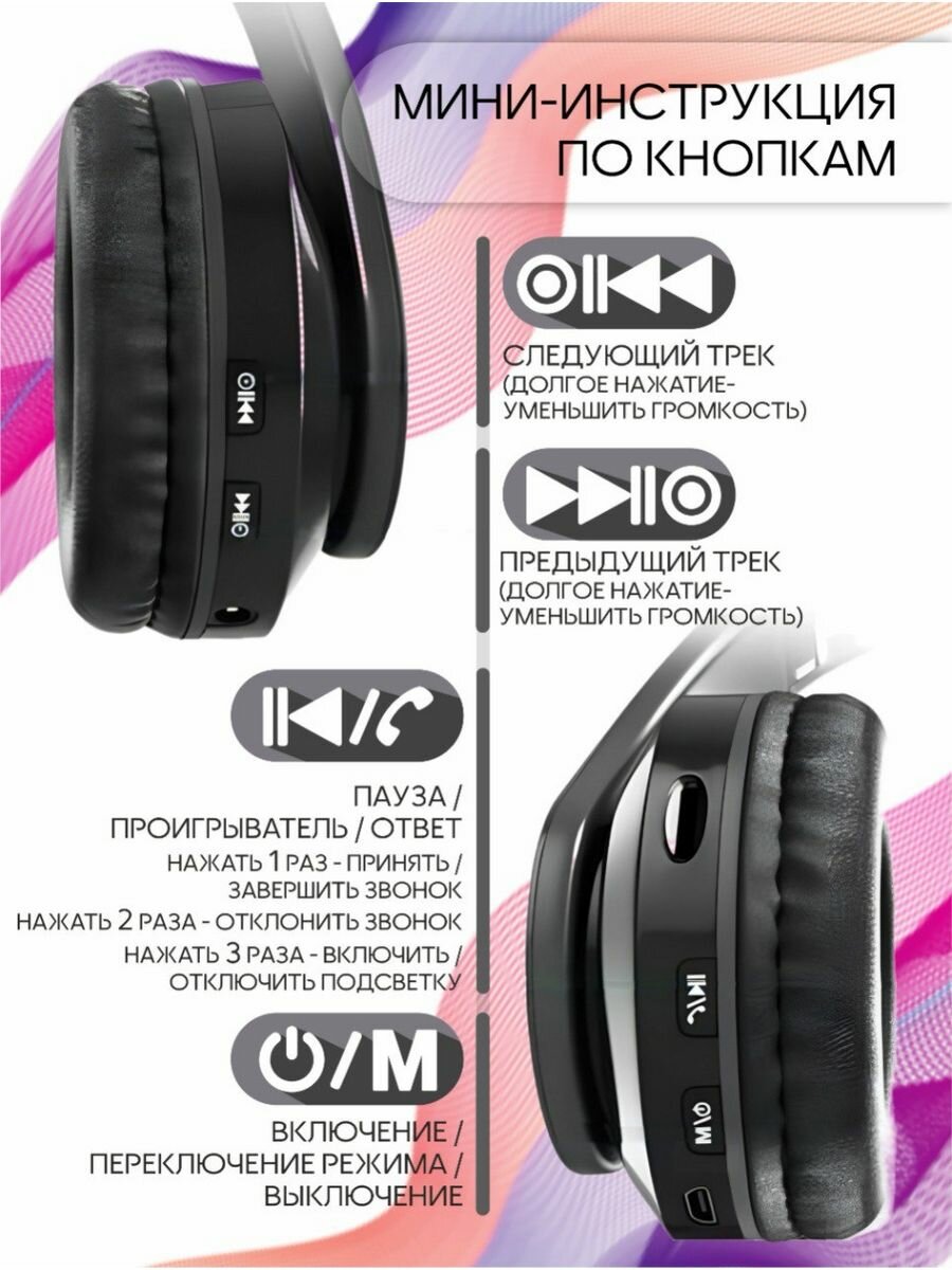 Наушники беспроводные большие с подсветкой черные
