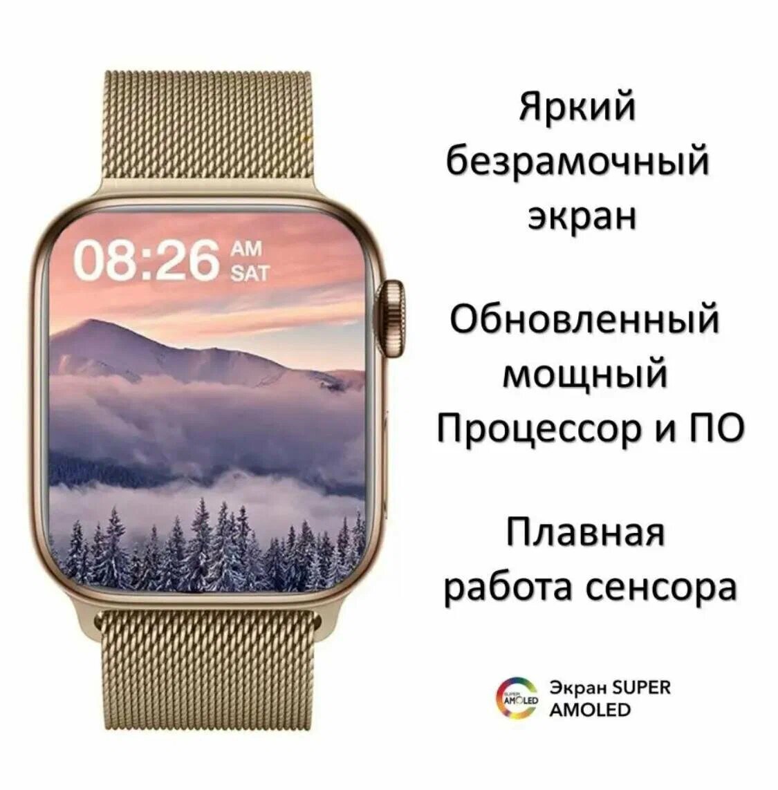 Умные часы Х9 pro AMOLED экран iOS Android, золотистые интересное: