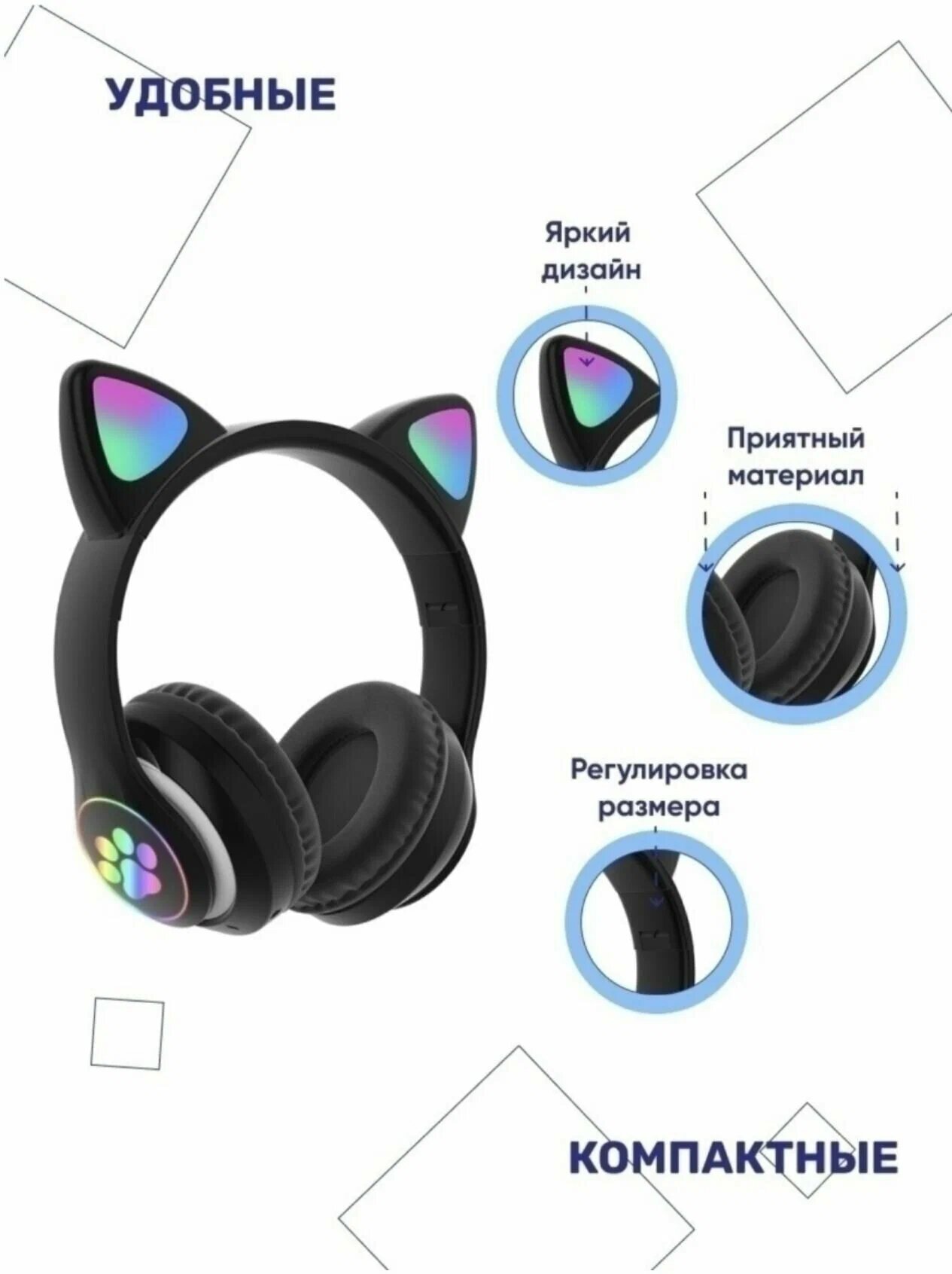 | Особенности | RGB подсветка, детские, регулировка громкости, складная конструкция |