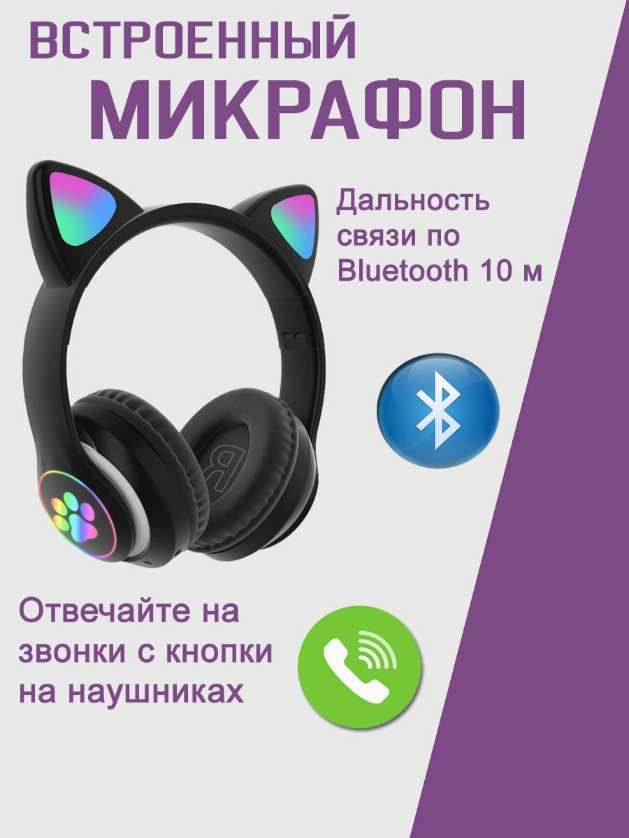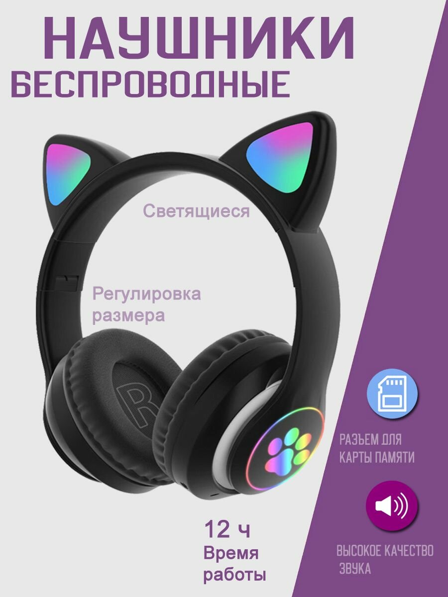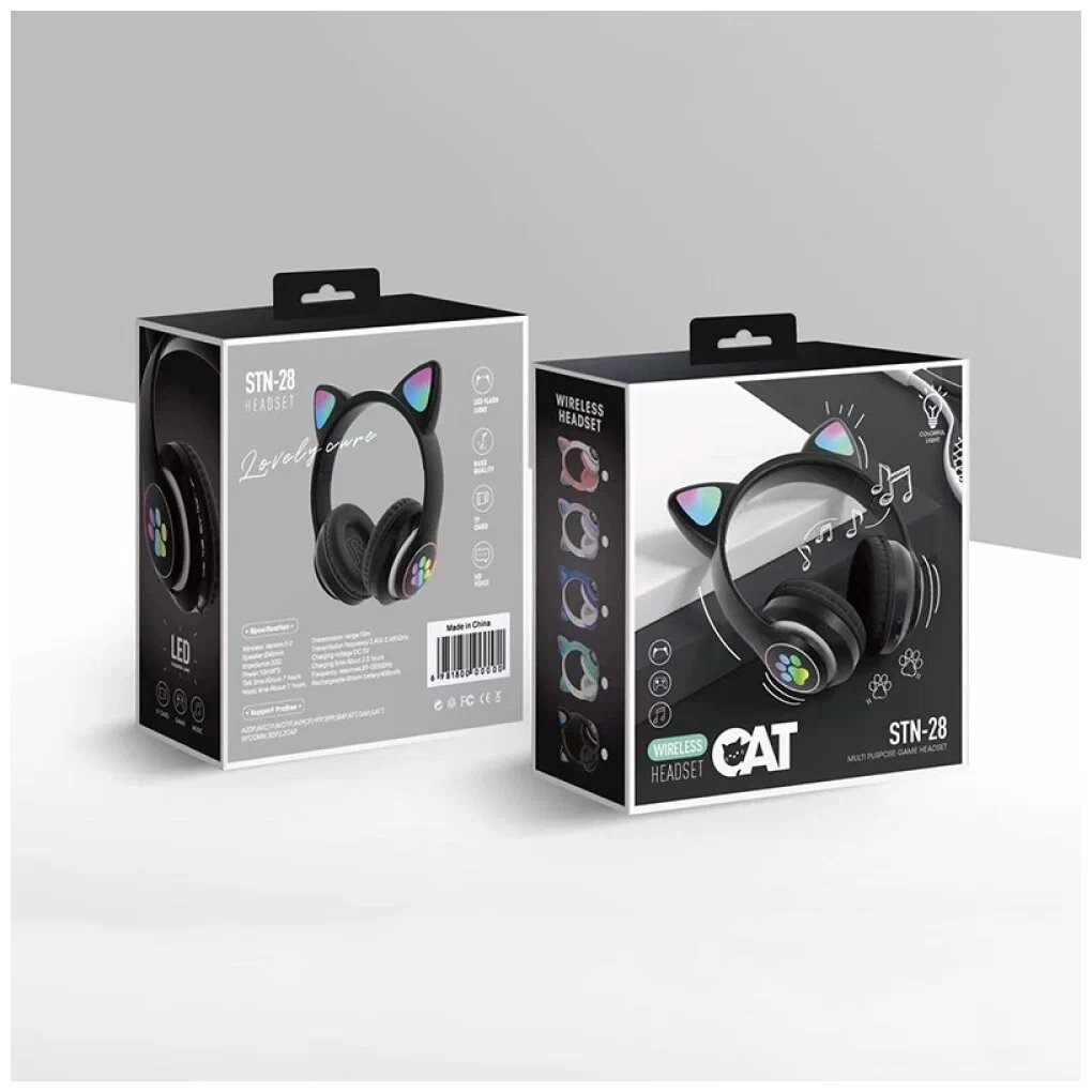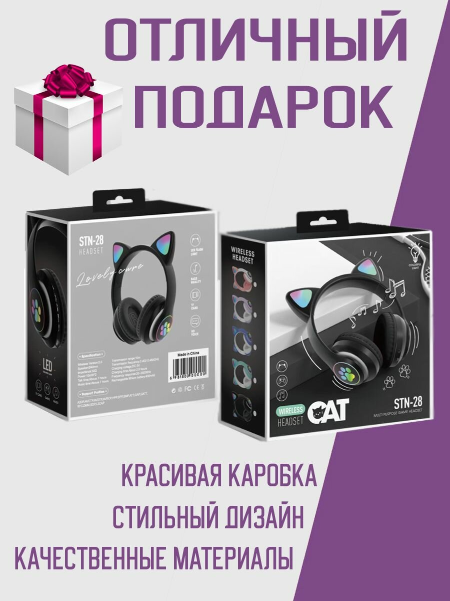 Наушники беспроводные с ушками CAT ear STN-28, черный интересное: