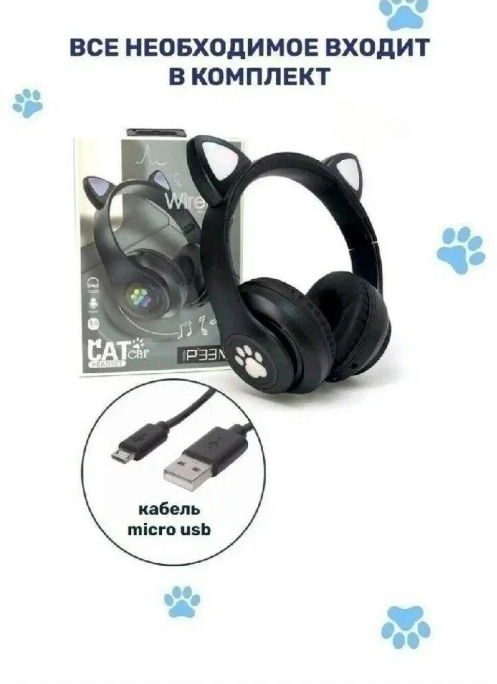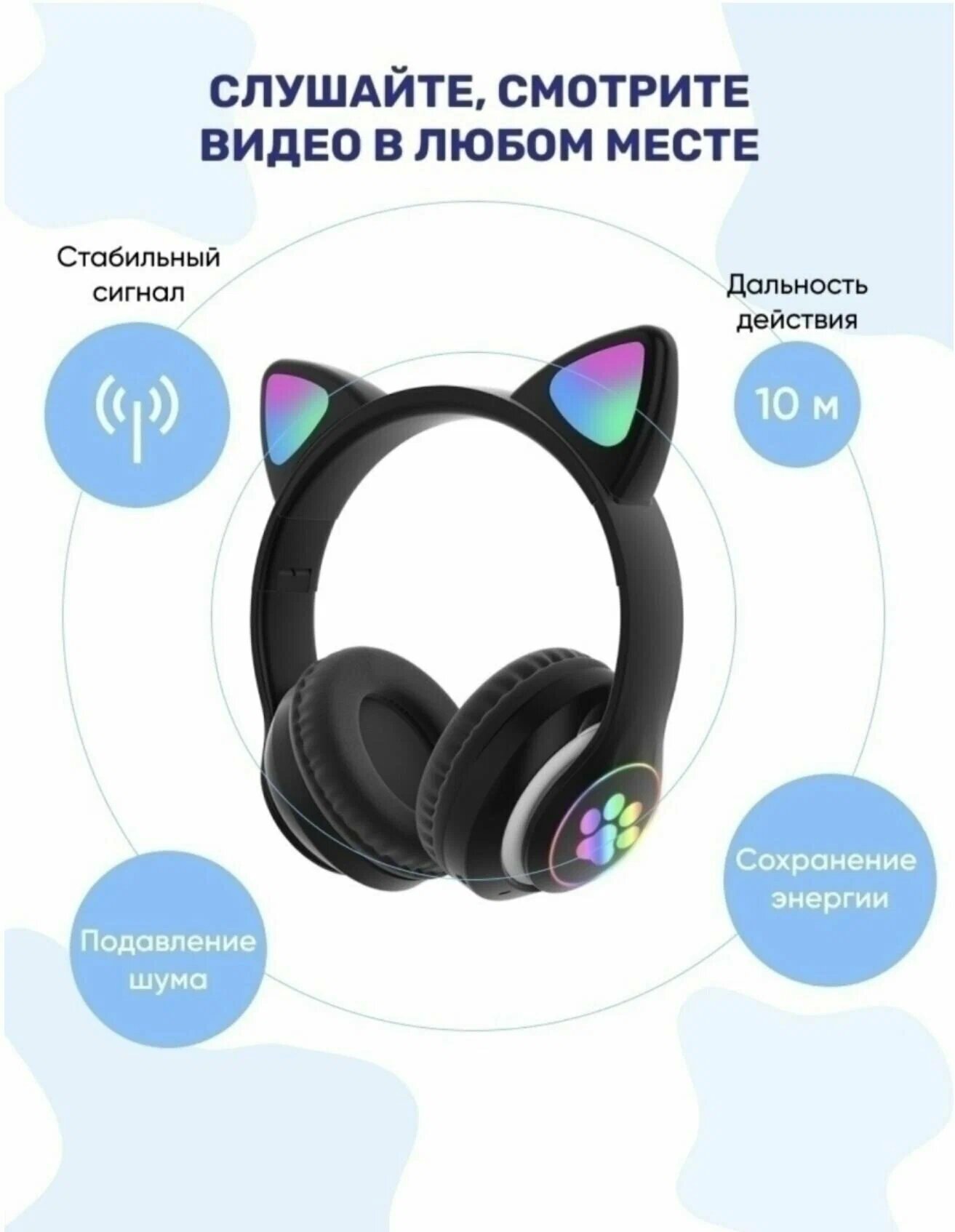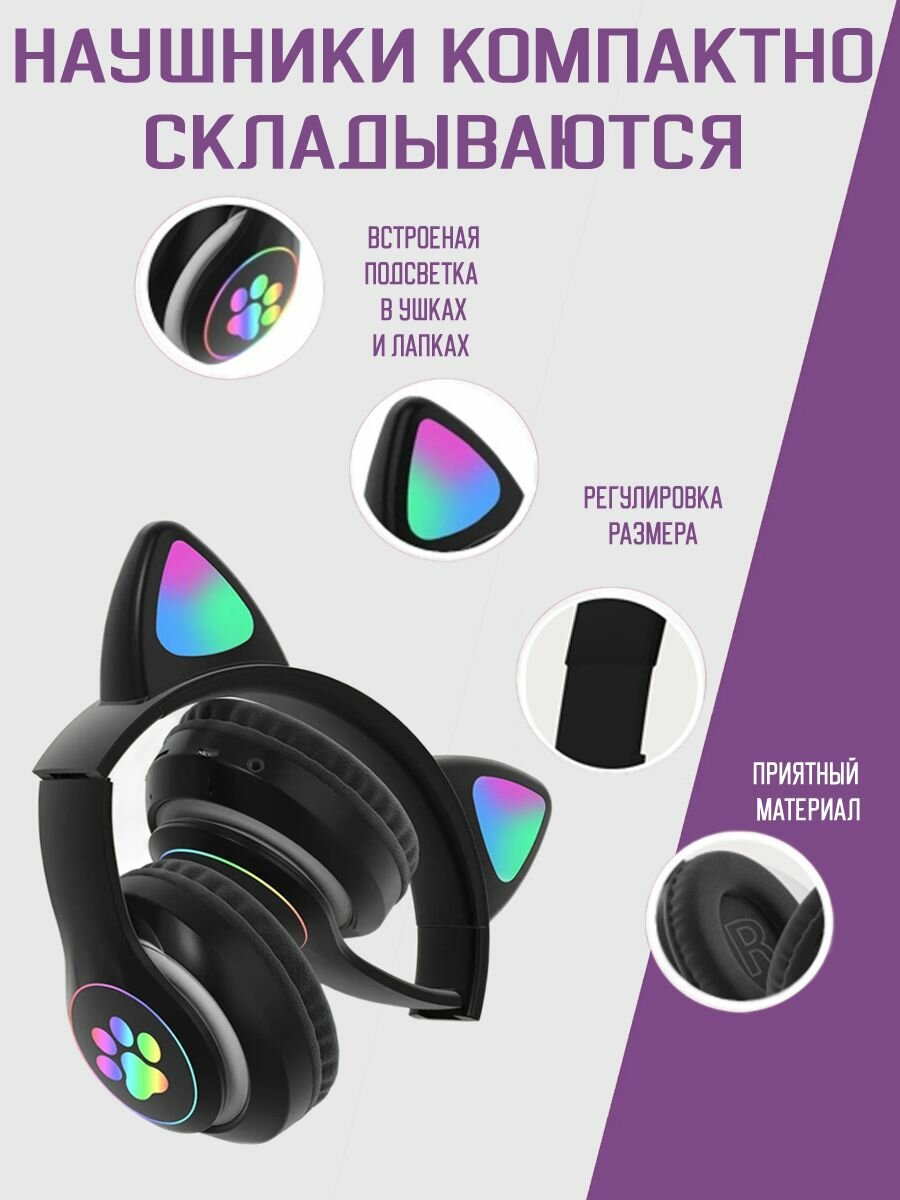 Наушники беспроводные с ушками CAT ear STN-28, черный интересное:
