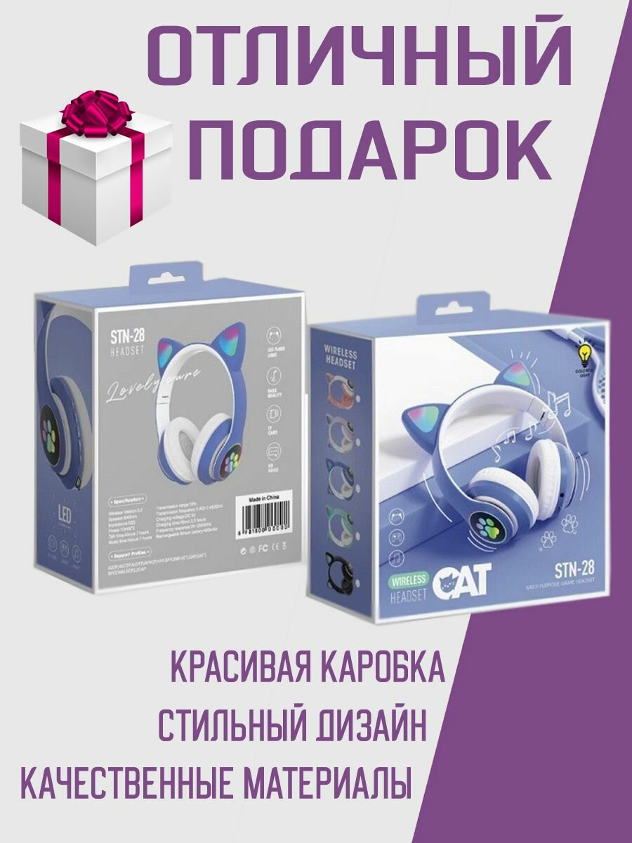 Наушники беспроводные с ушками CAT ear STN-28, синий интересное: